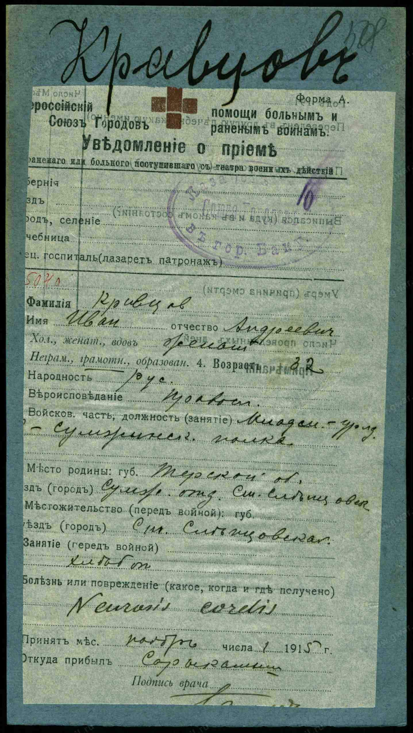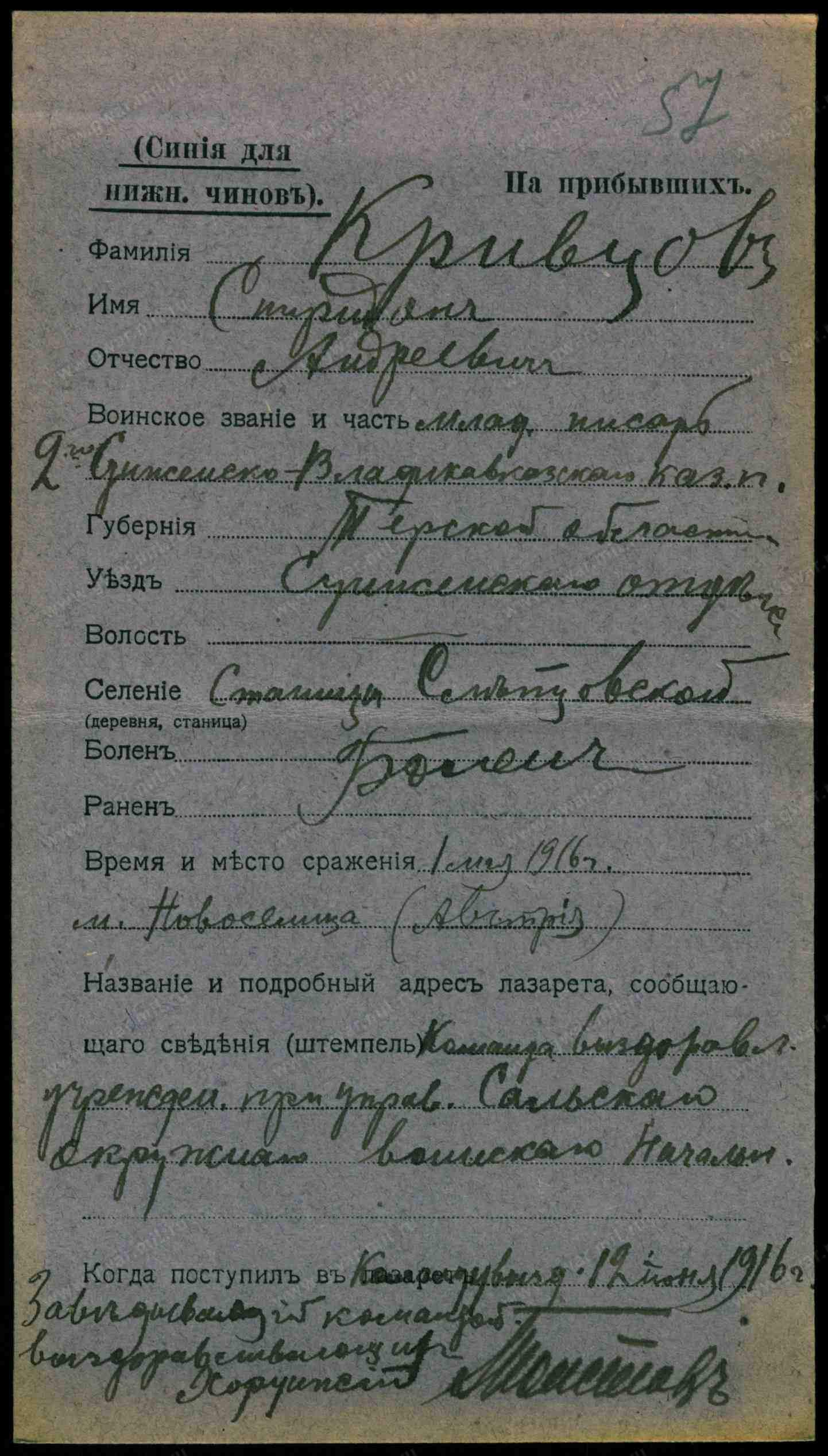 Отец: Кривцов Спиридон Андреевич ст. Орджоникидзевская