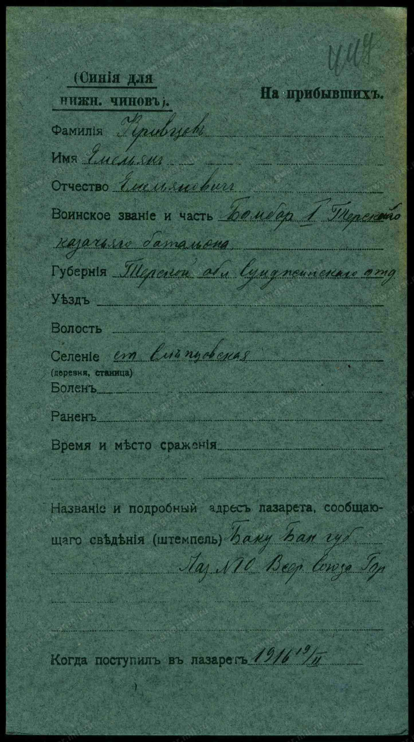 Приказ по 2 Сунженско-Владикавказскому полку №348 от 14 декабря 1915г. с. Мамалыка