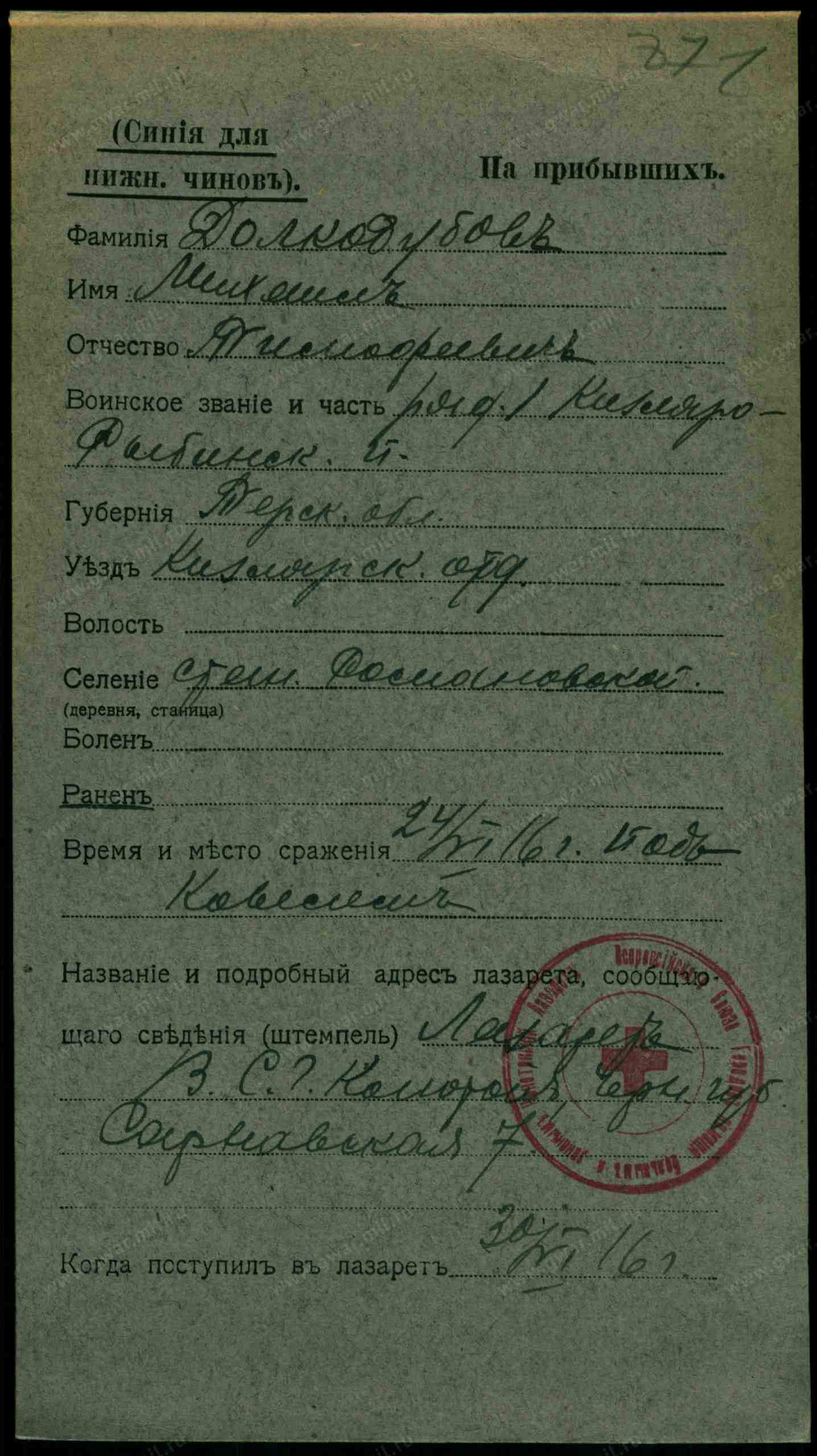Дата выбытия 24.06.1916