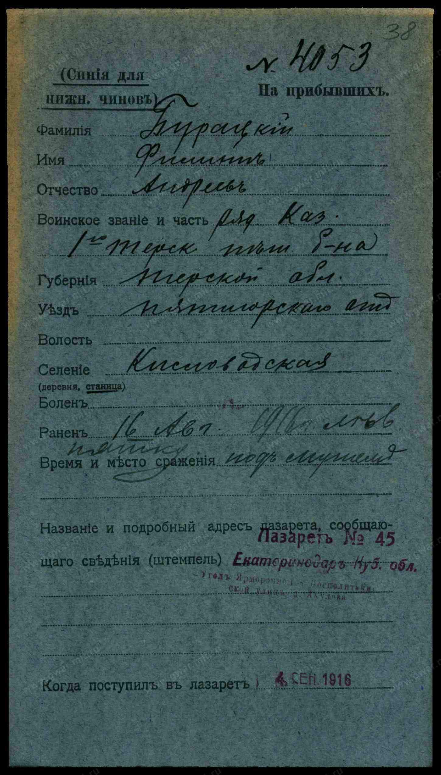 Бурацкий Карп Архипович Терская обл. Кисловодская ст. Эмиграция. Списки 1923