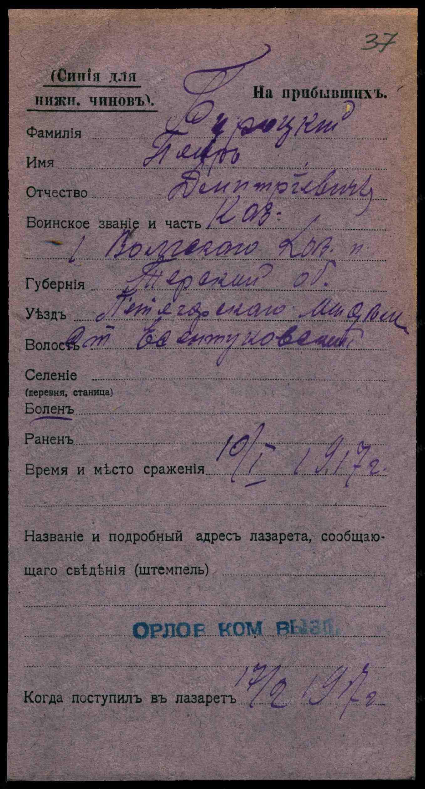 Фонд Картотека бюро учета потерь в Первой мировой войне (офицеров и солдат)