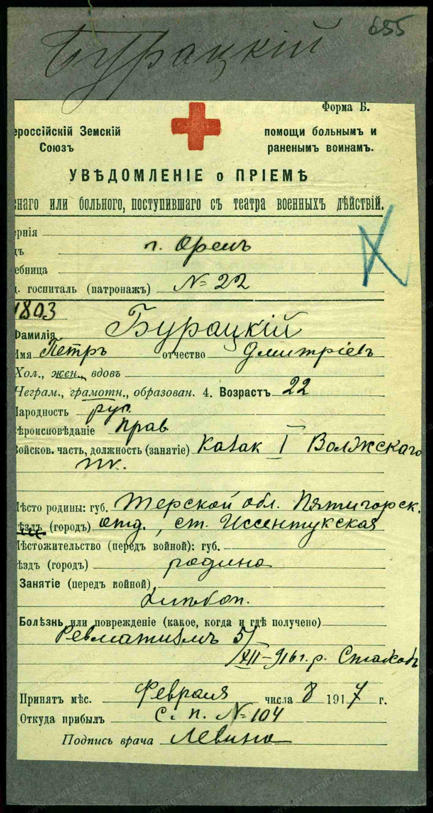Место рождения Терская обл., Пятигорский отдел, стнц. Ессентукская