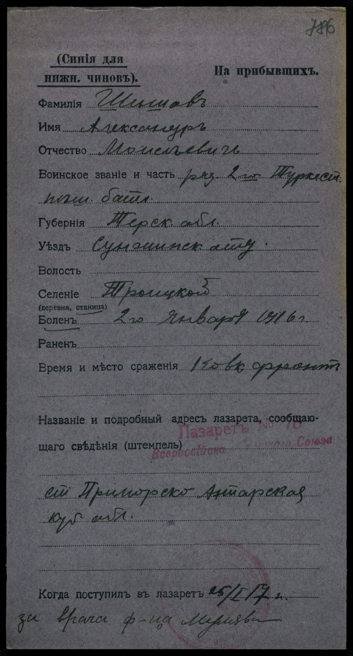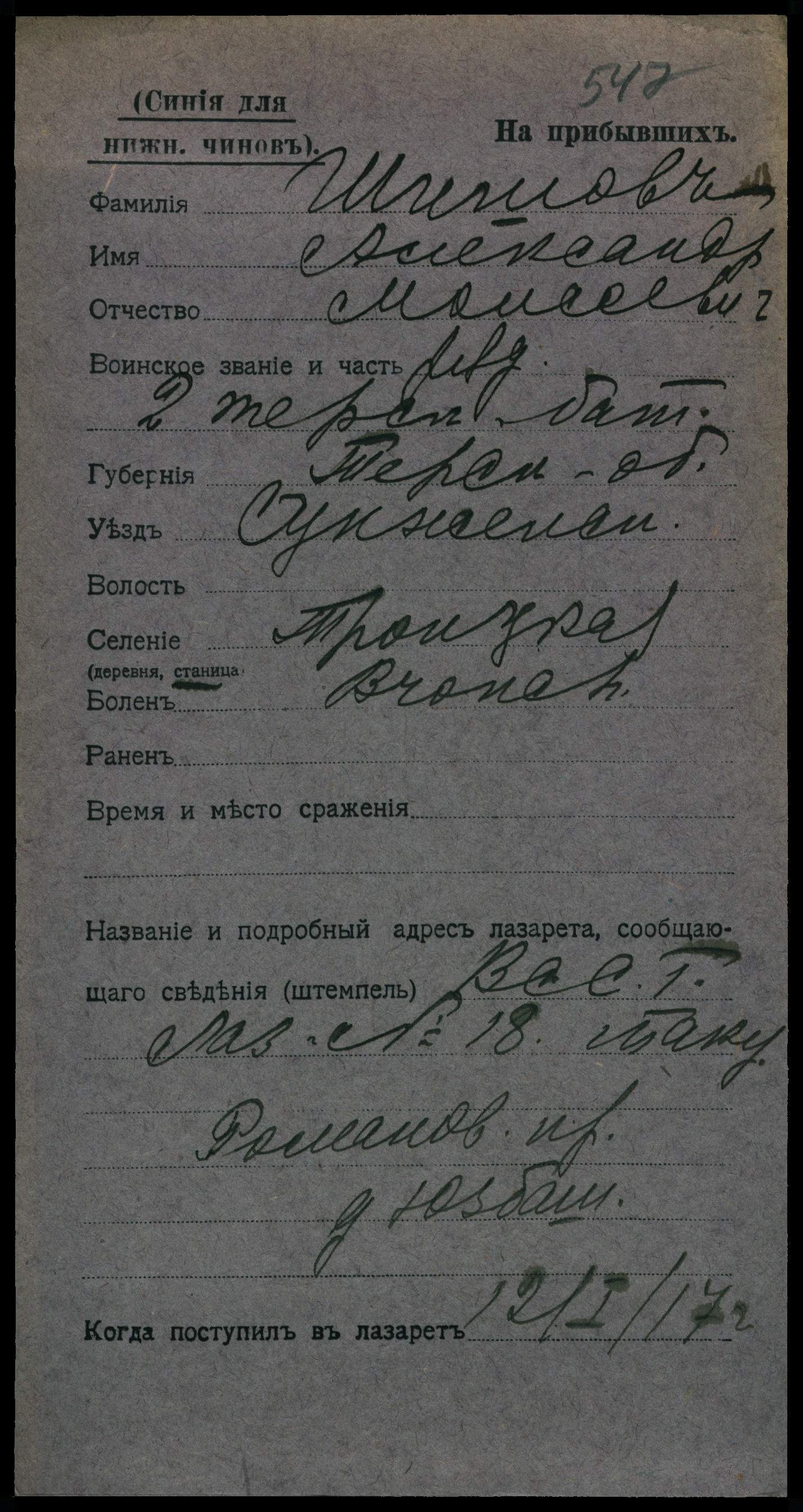 Место рождения Терская обл., Сунженский отдел, стнц. Троицкая