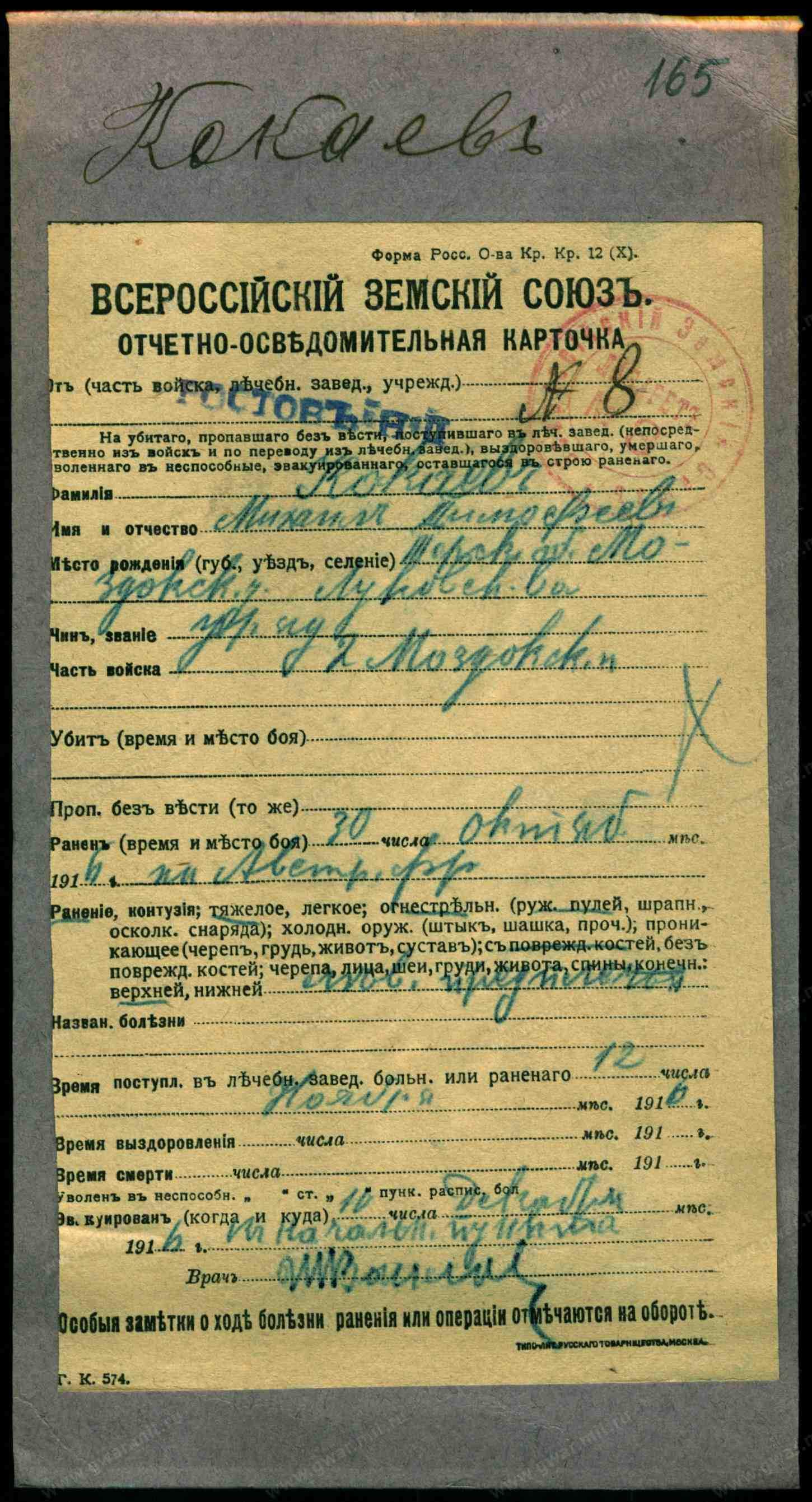 Фонд Картотека бюро учета потерь в Первой мировой войне (офицеров и солдат)
