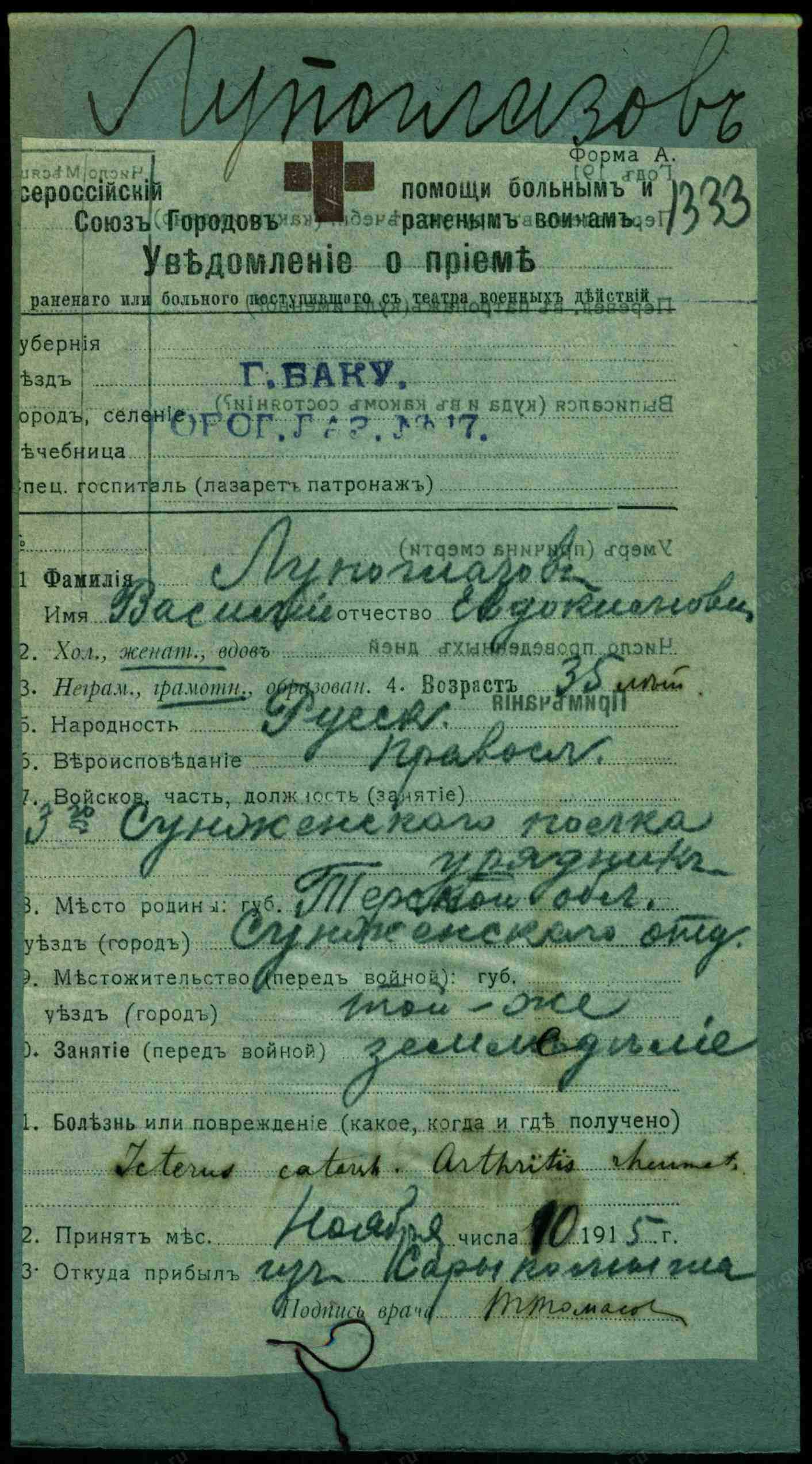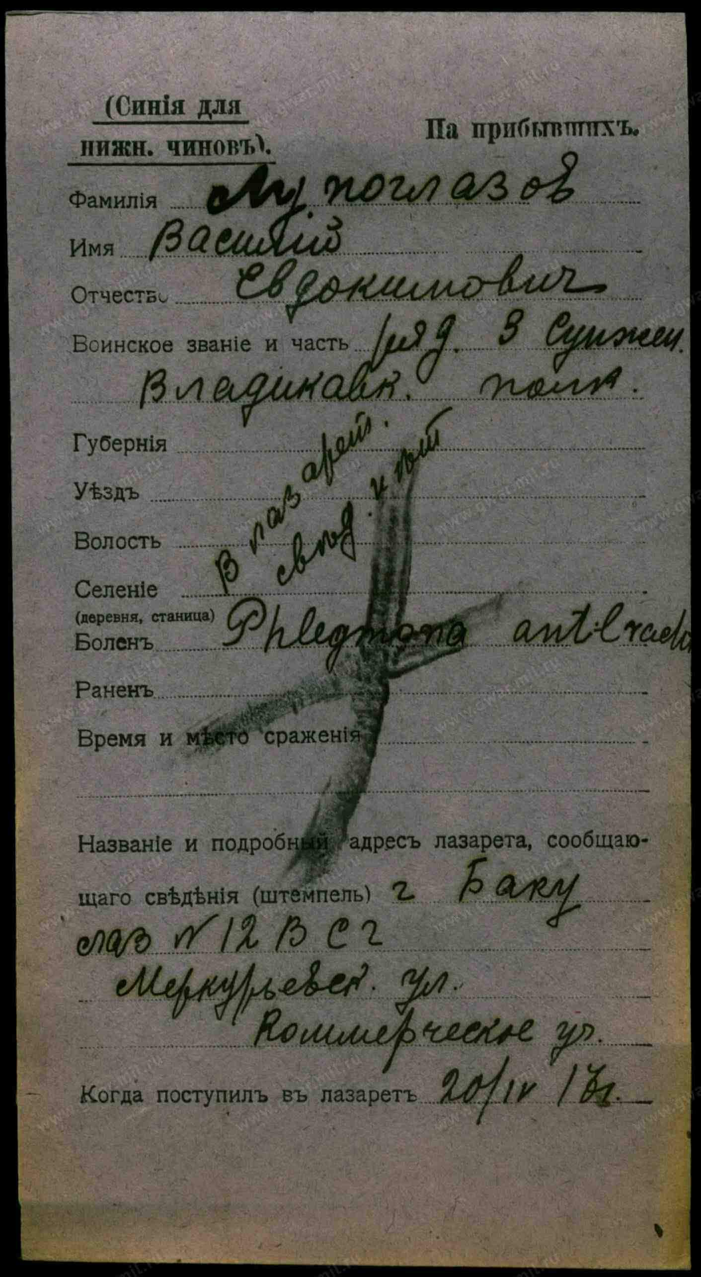 Фонд Картотека бюро учета потерь в Первой мировой войне (офицеров и солдат)