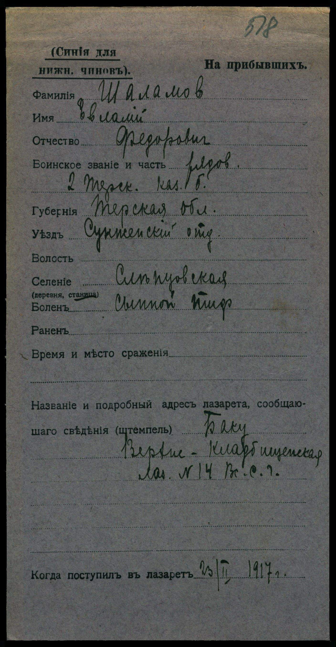 Именной список 1-го Сунженского линейного казачьего полка станицы Слепцовской жителям пострадавшим разорение сильного наводнения от дождя 9 августа 1852 года.