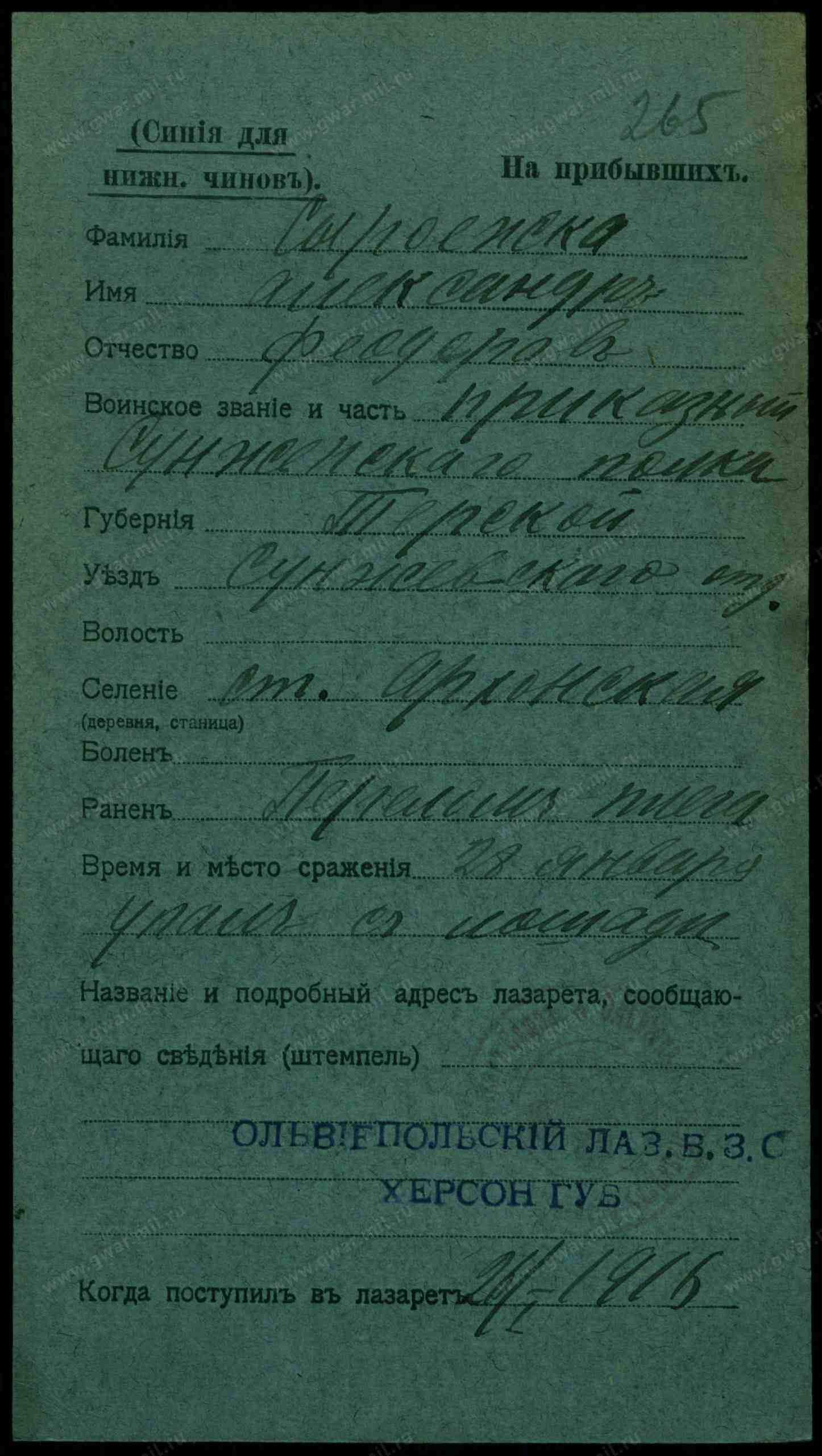 Фонд Картотека бюро учета потерь в Первой мировой войне (офицеров и солдат)