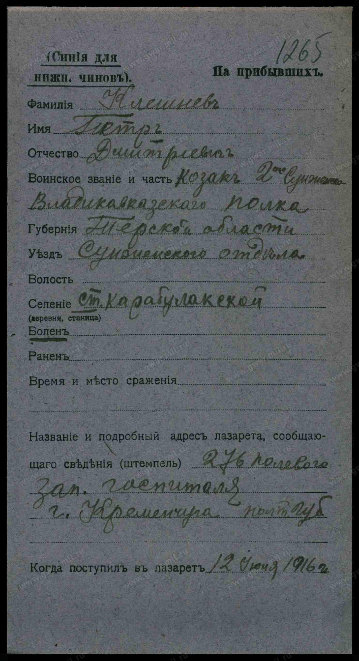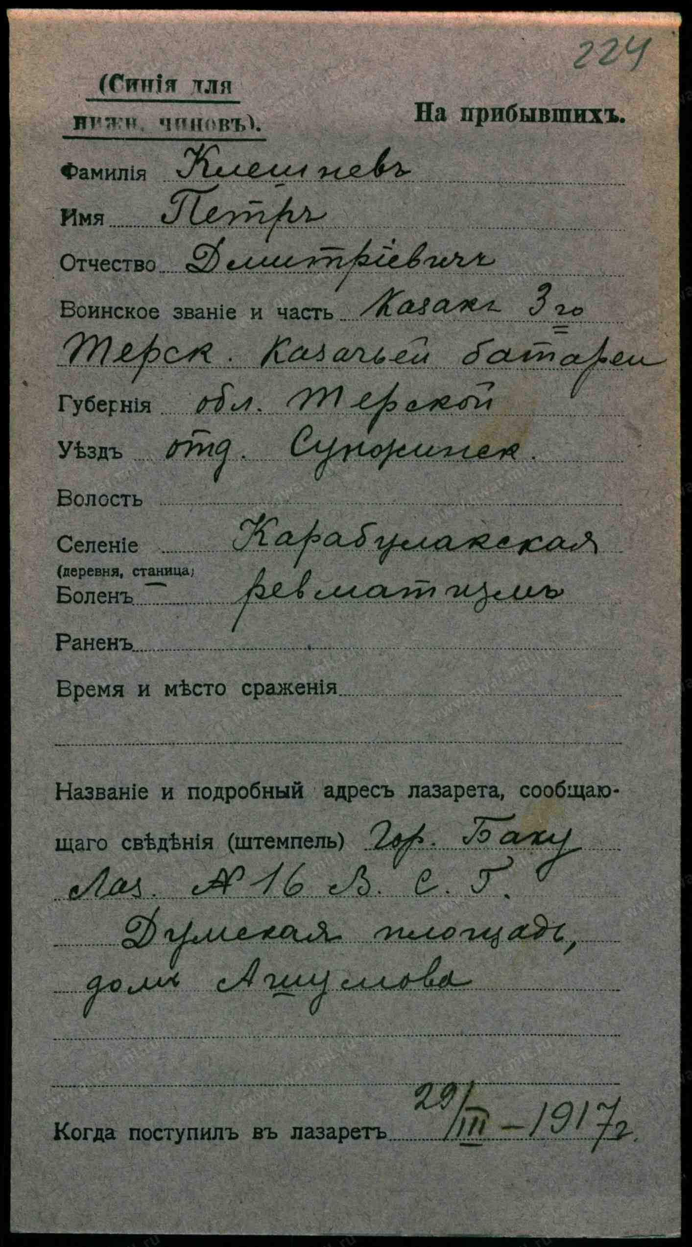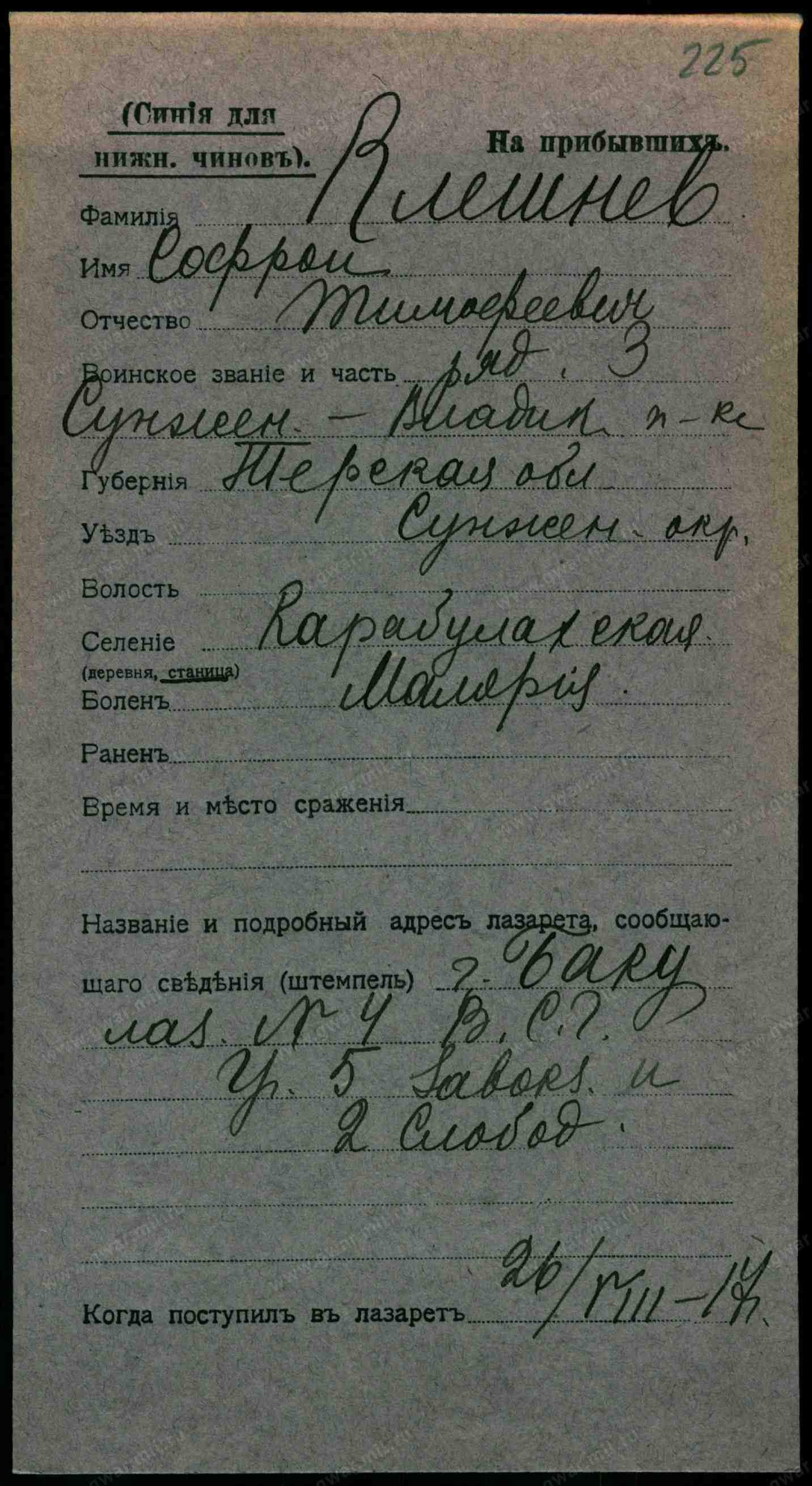 Фонд Картотека бюро учета потерь в Первой мировой войне (офицеров и солдат)