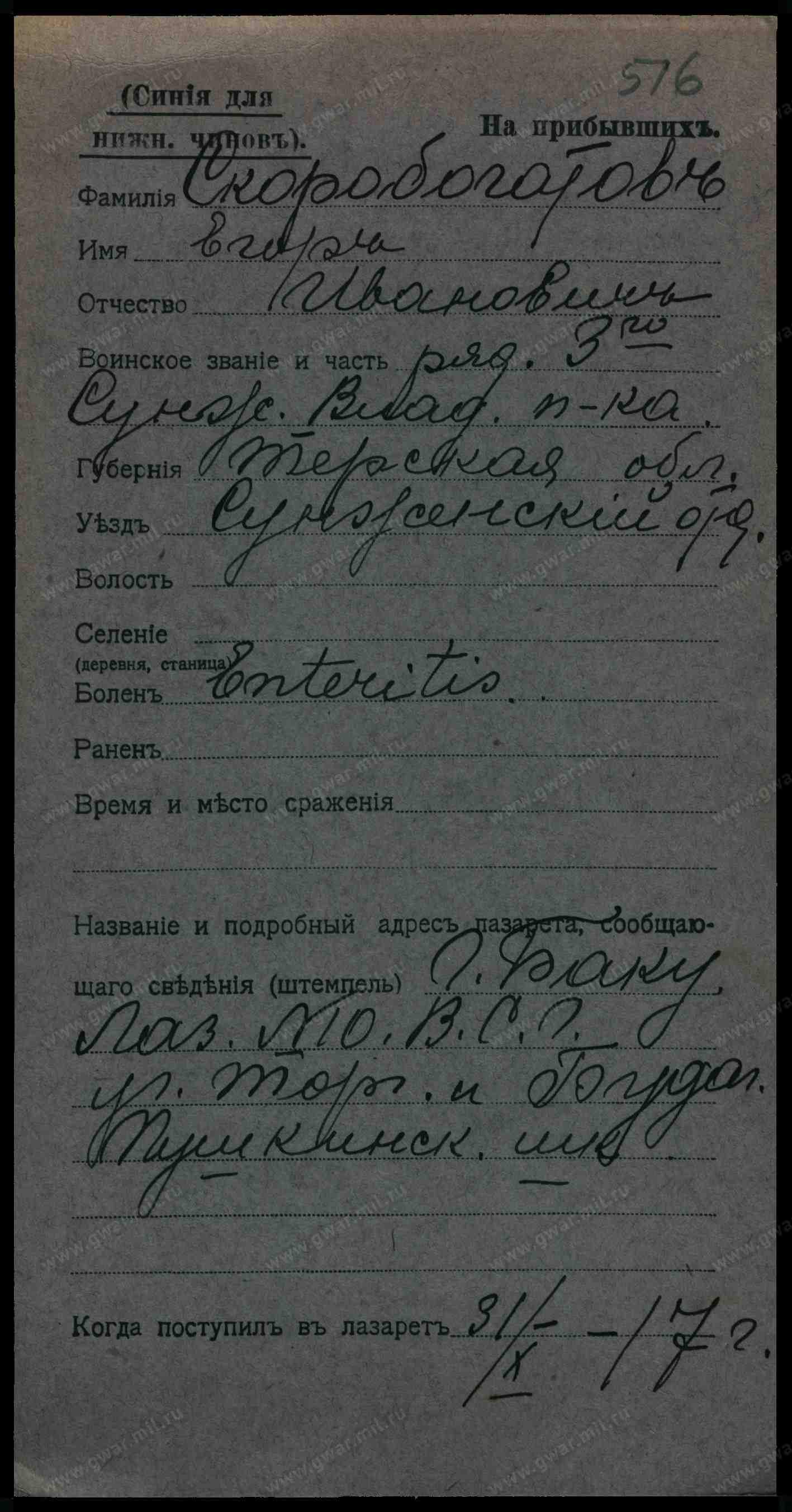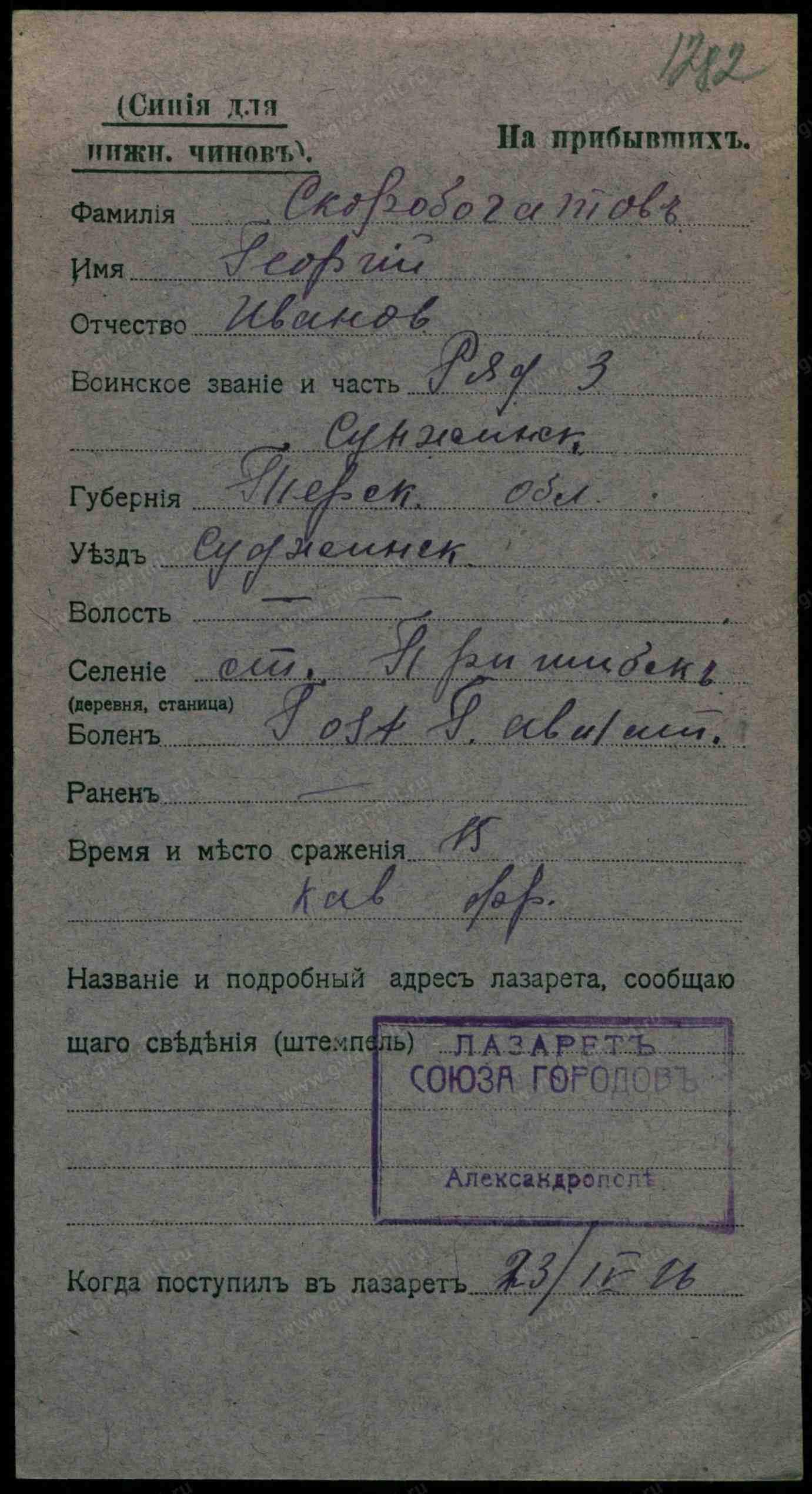 Фонд Картотека бюро учета потерь в Первой мировой войне (офицеров и солдат)