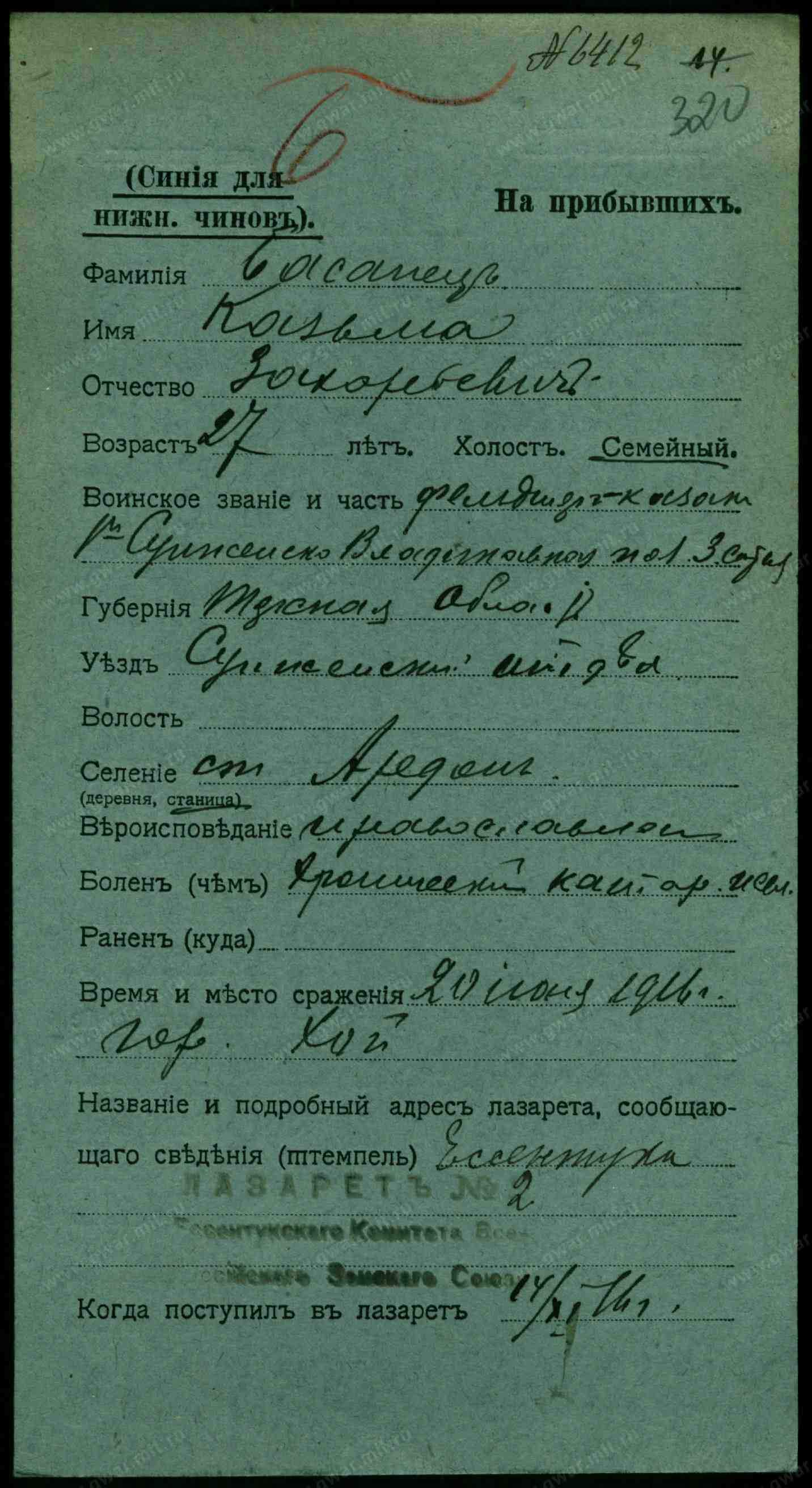 Место рождения Терская обл., Сунженский округ (отдел), стнц. Ардонская
