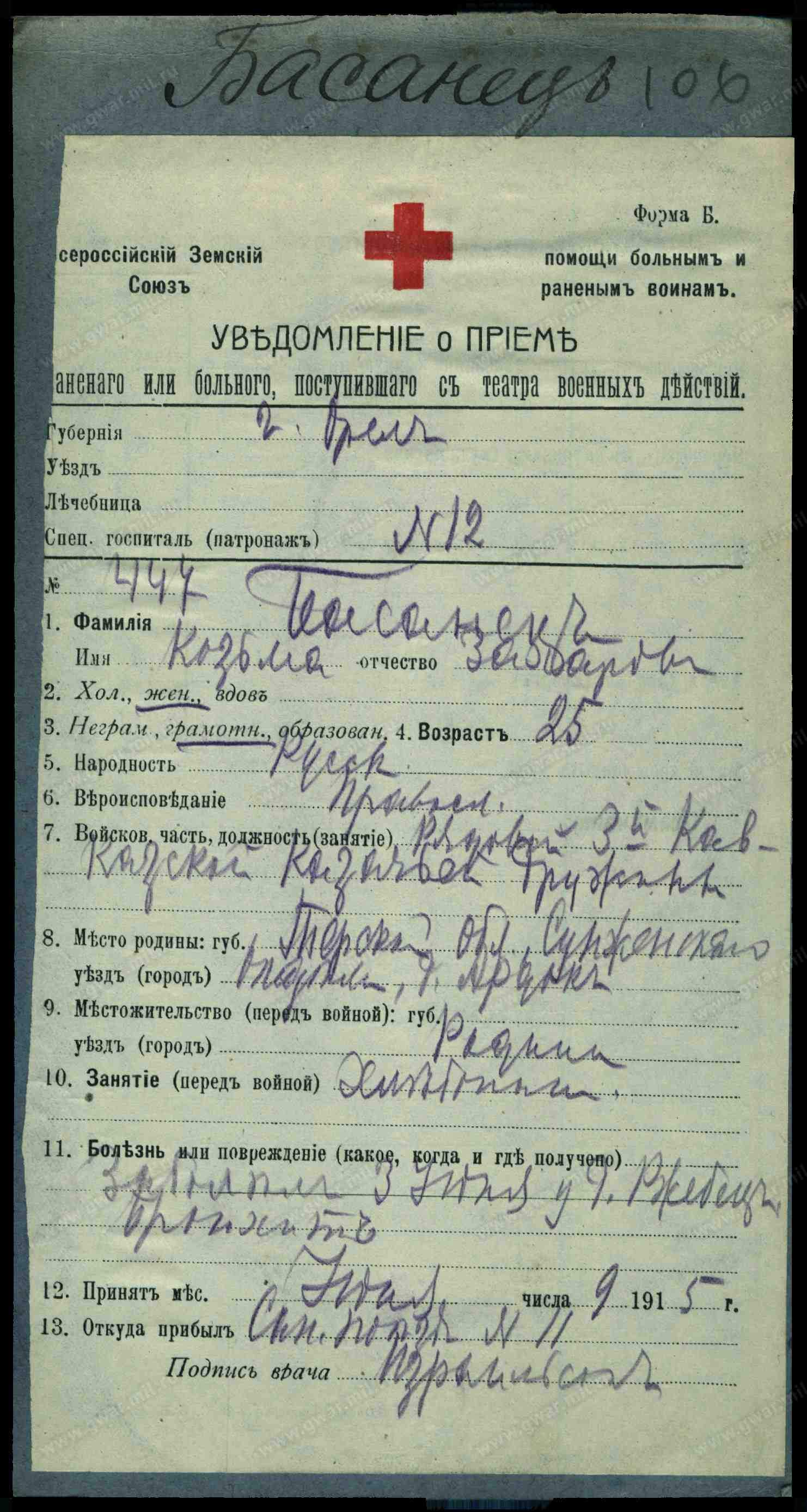 Фонд Картотека бюро учета потерь в Первой мировой войне (офицеров и солдат)