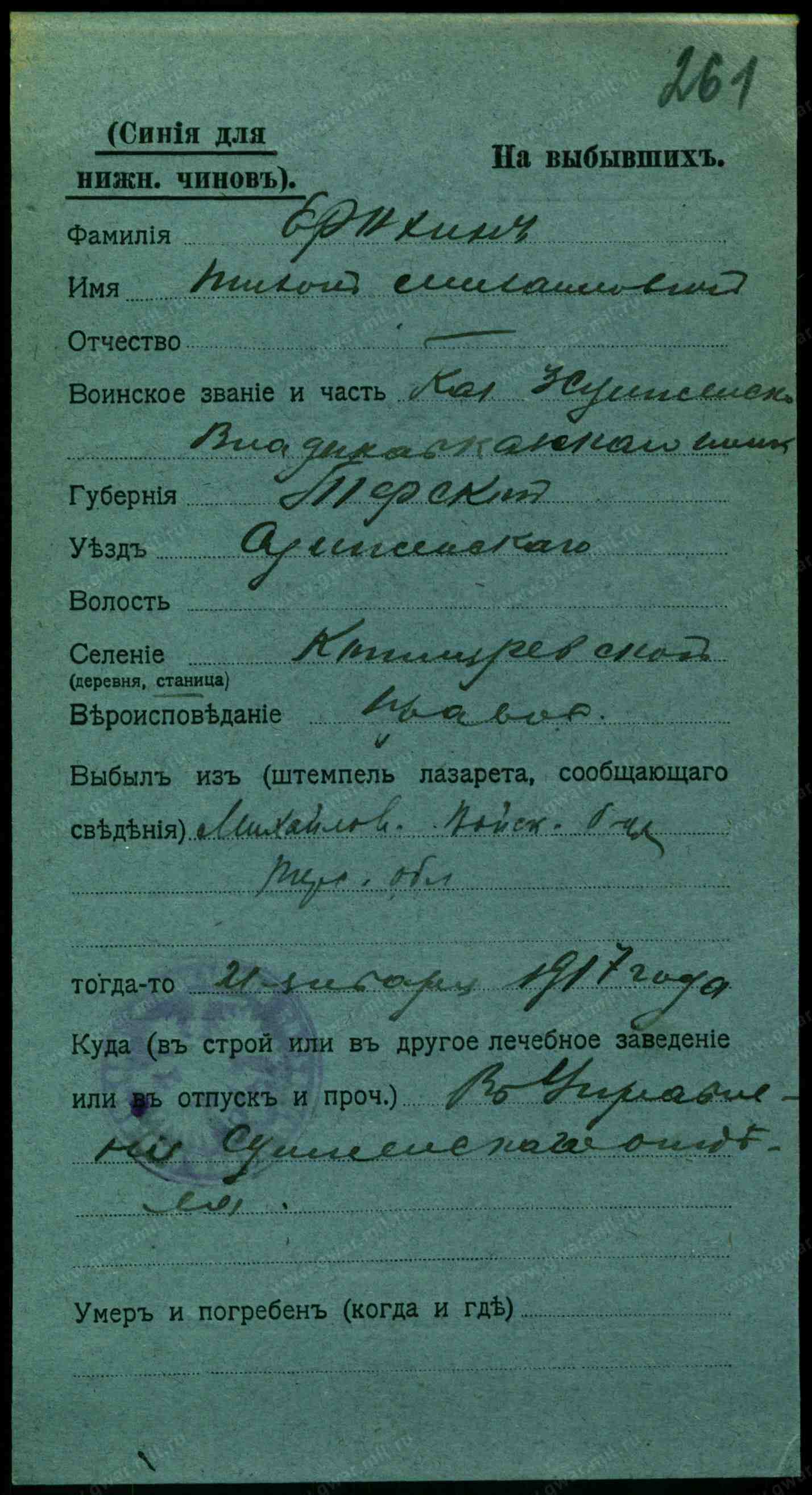 Фонд: Картотека бюро учета потерь в Первой мировой войне (офицеров и солдат).