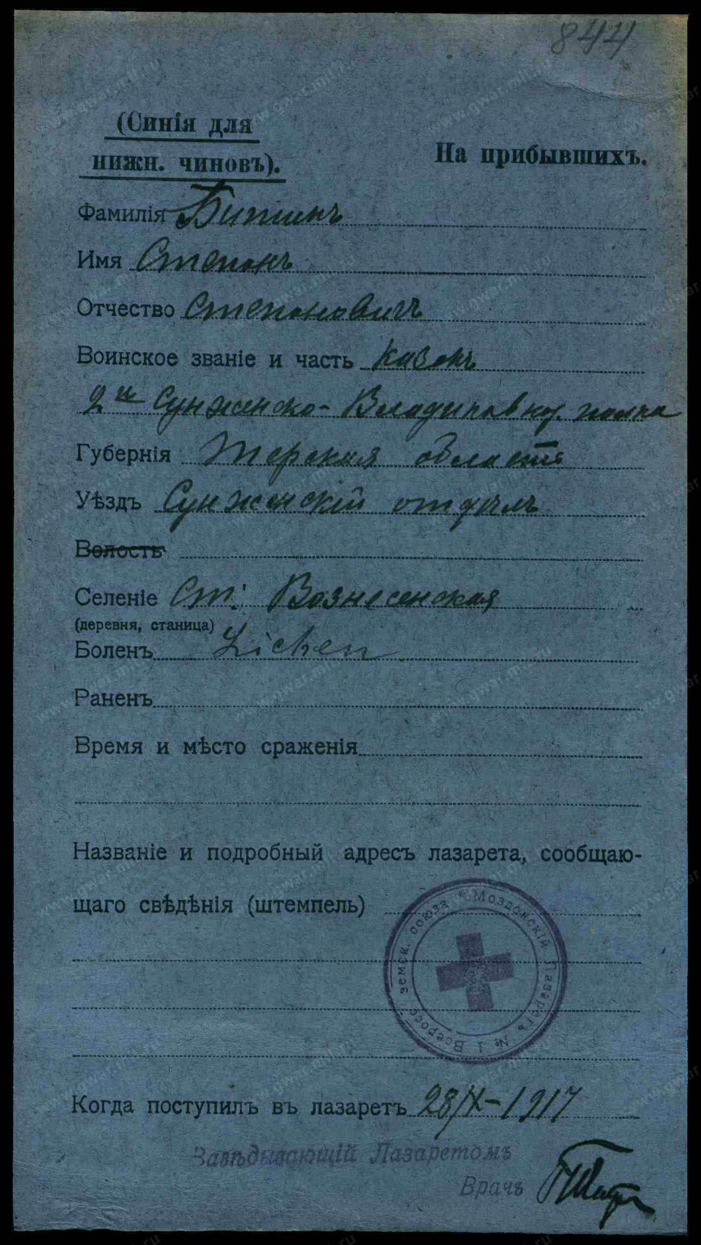 По женихе: Терского казачьего войска Сунженской станицы казак Василий Евфимович Примма, того же войска Вознесенской станицы казак Семеон Стефанович Битин;