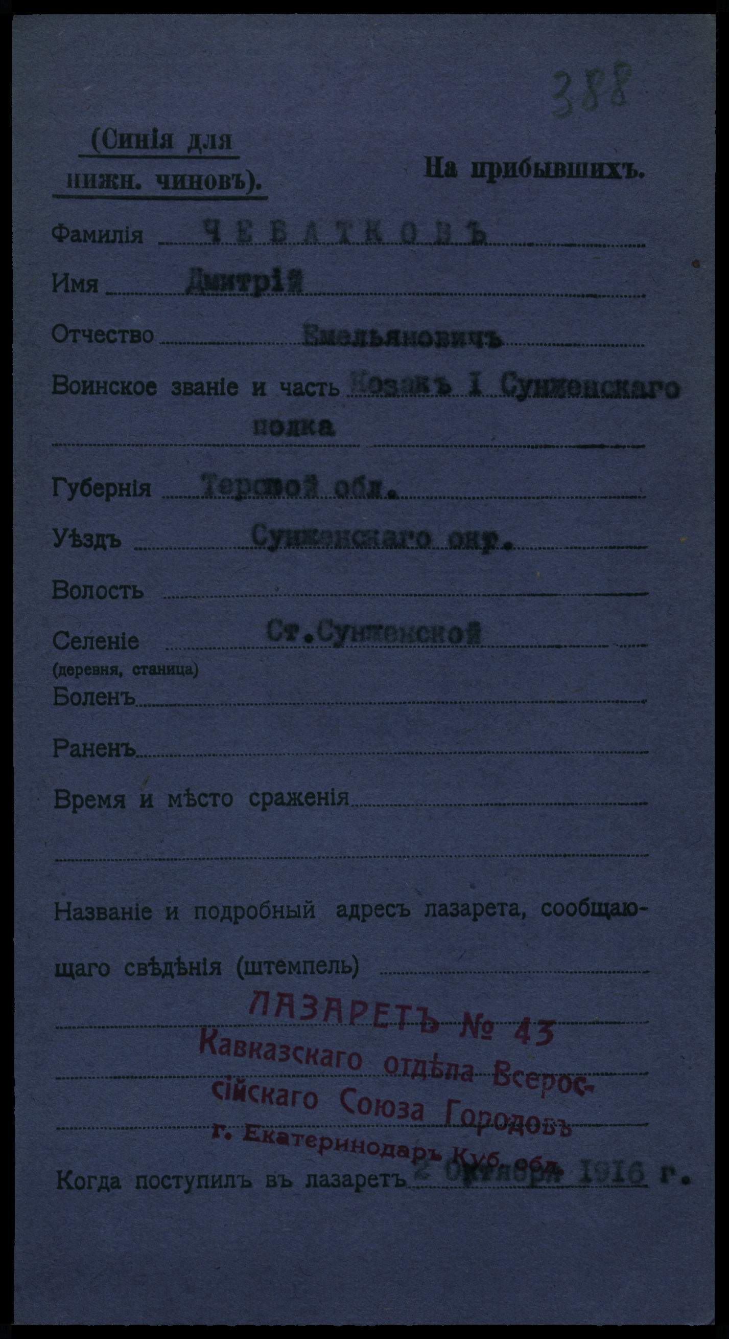 __.__.1906 Чечено-Ингушская АССР, Пригородный р-н, ст. Сунтенская (Северо-Осетинская АССР, г. Орджоникидзе),