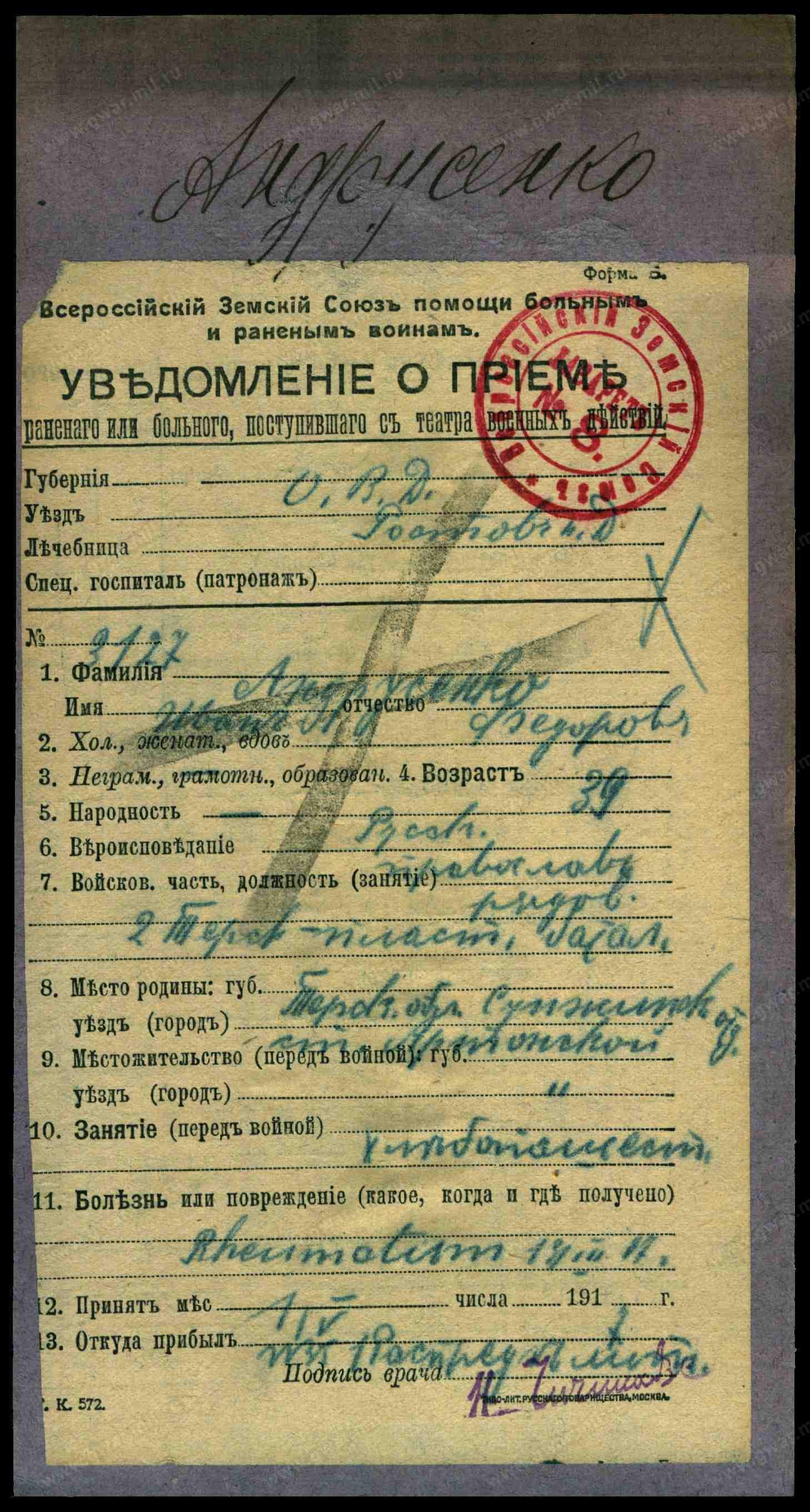 __.__.1914 Северо-Осетинская АССР, Ордамский р-н, станица Орды. Из госпиталя
