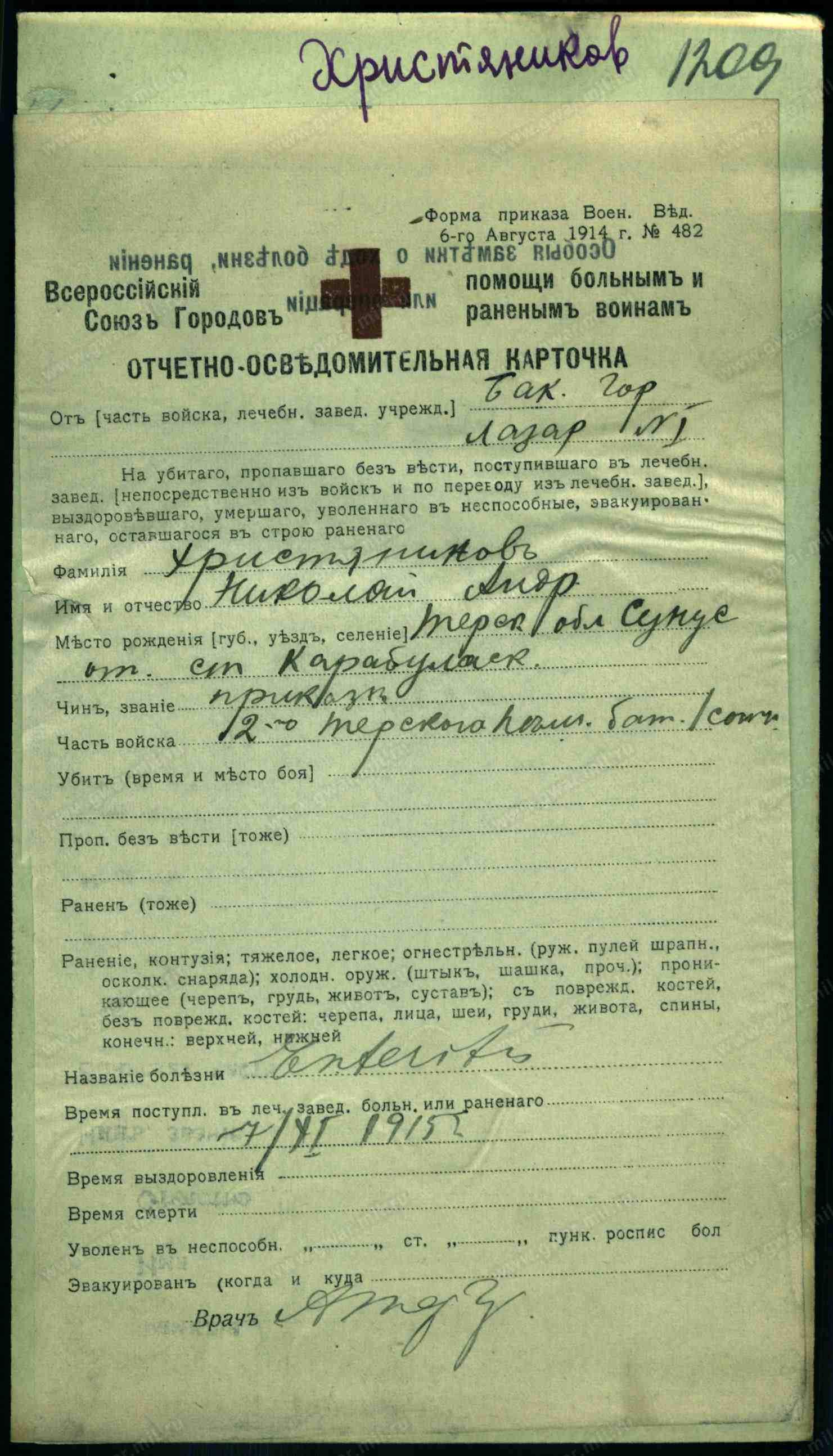 Фонд Картотека бюро учета потерь в Первой мировой войне (офицеров и солдат)