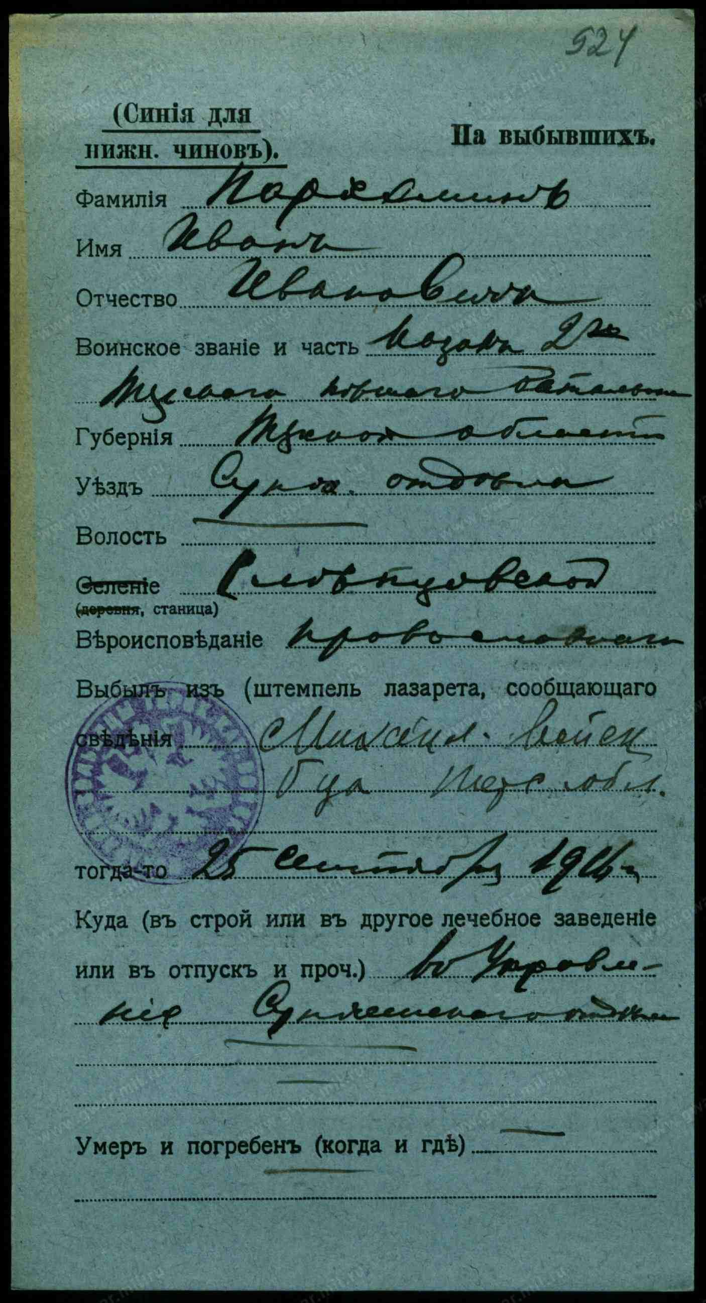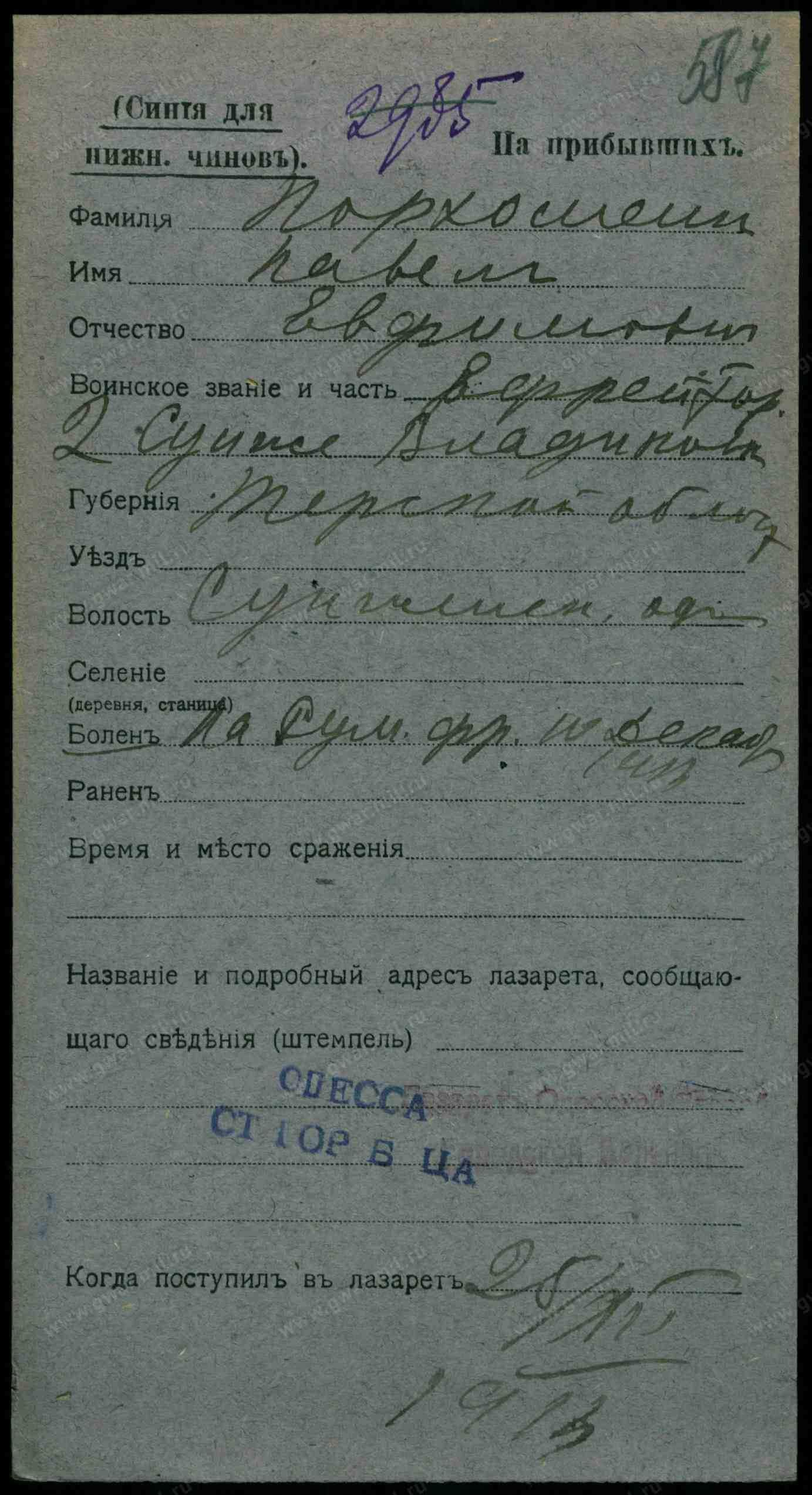 __.__.1905 Чечено-Ингушская АССР, Сунженский р-н, ст. Орджоникидзевская, Место службы: 20 огмиб. Именные списки частей
