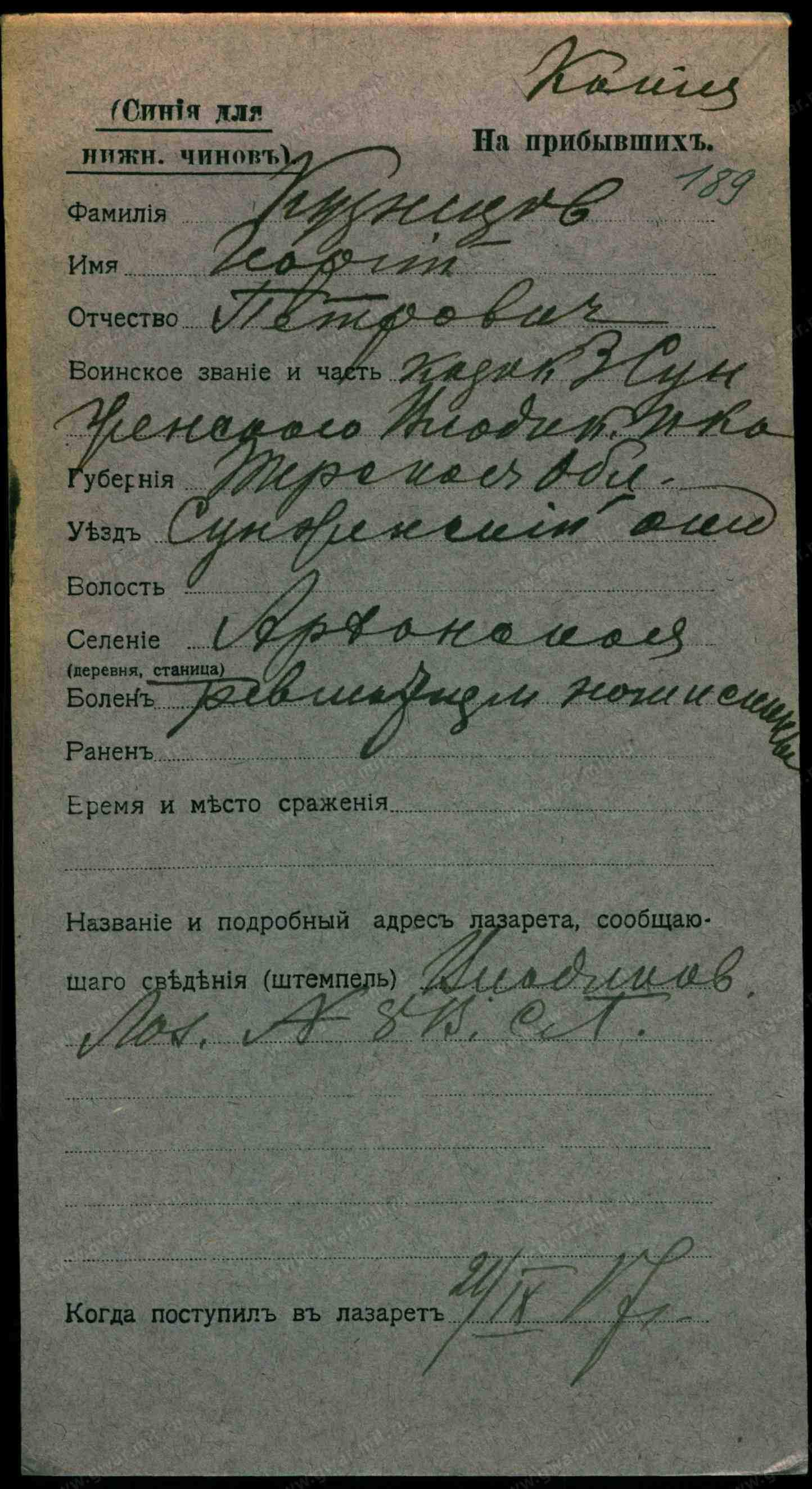 Фонд Картотека бюро учета потерь в Первой мировой войне (офицеров и солдат)