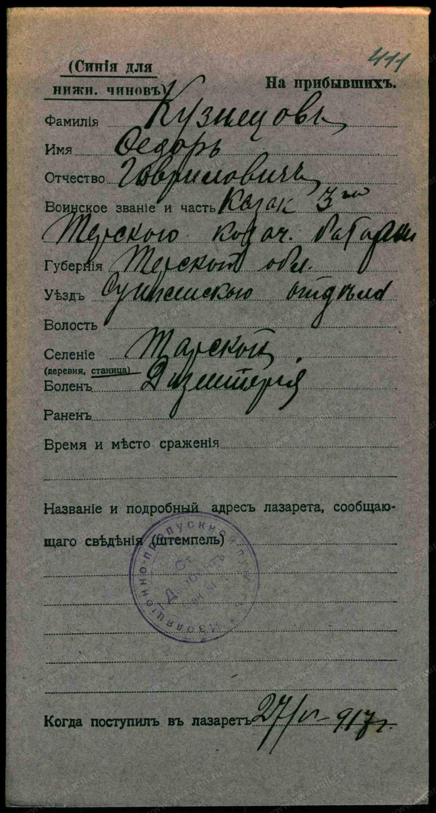 Казаки ст. Тарской, Сунженского отд. из базы данных послужных списков казаков на сайте http://kubangenealogy.ucoz.ru