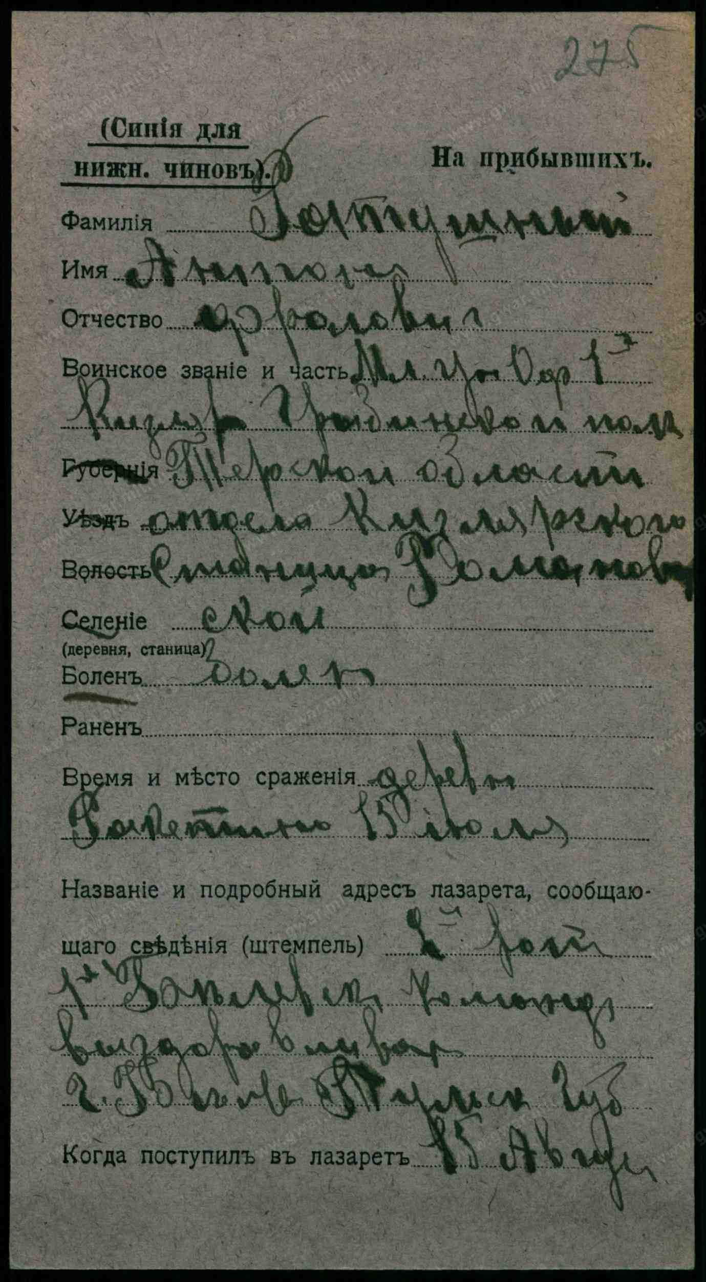 Место рождения Терская обл., Кизлярский отдел Причина выбытия болен