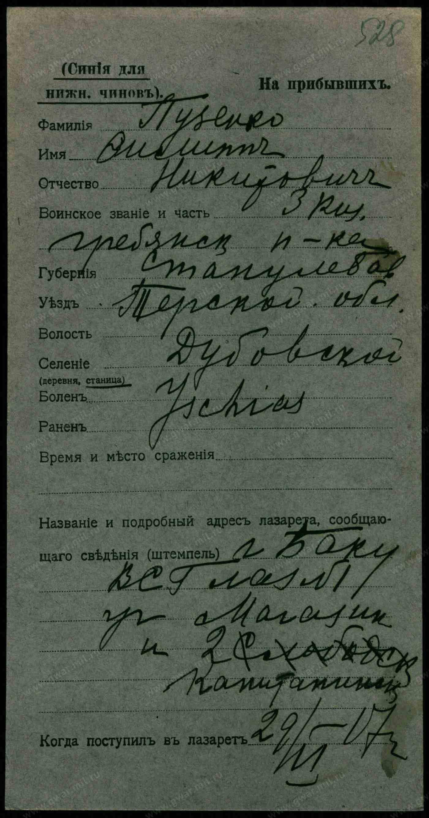 __.__.1906 Орджоникидзевский край, Кизлярский окр., ст. Дубовская, Место службы: 244 сд
