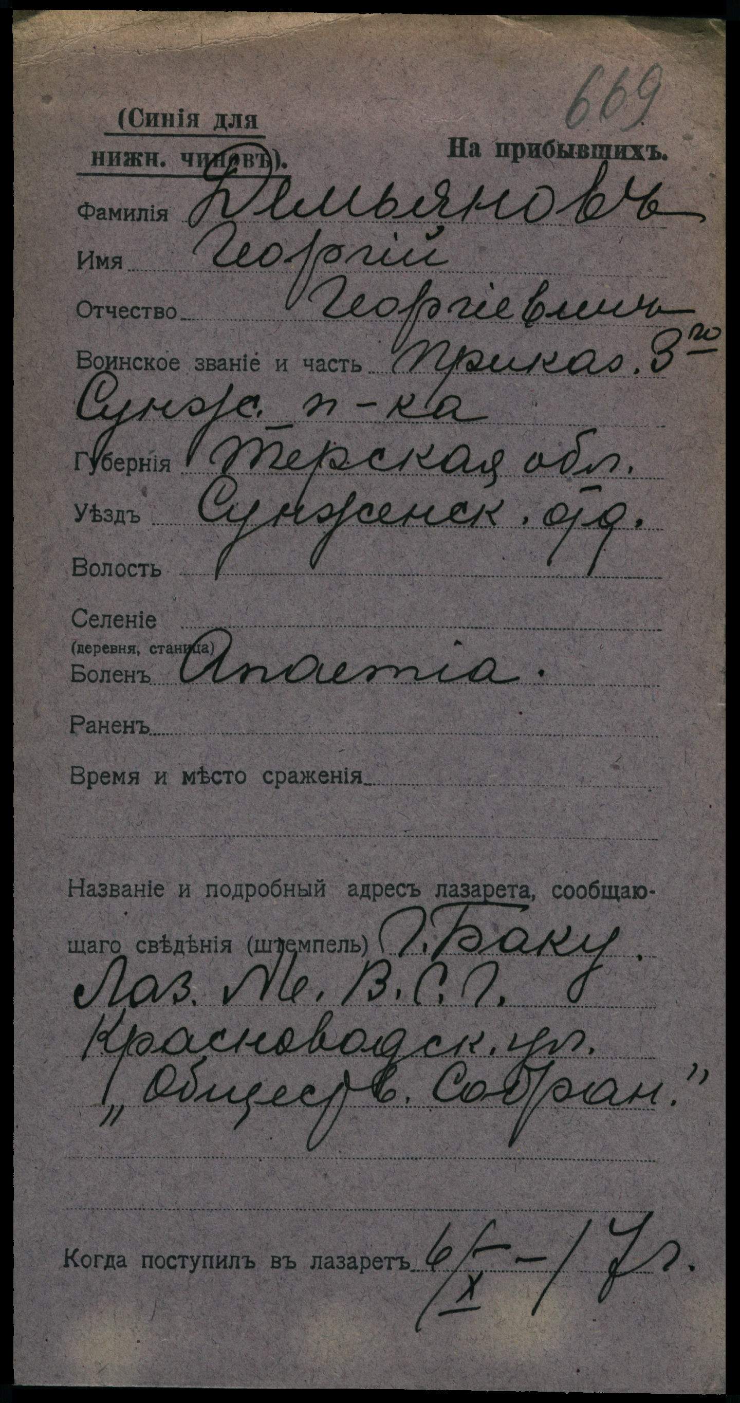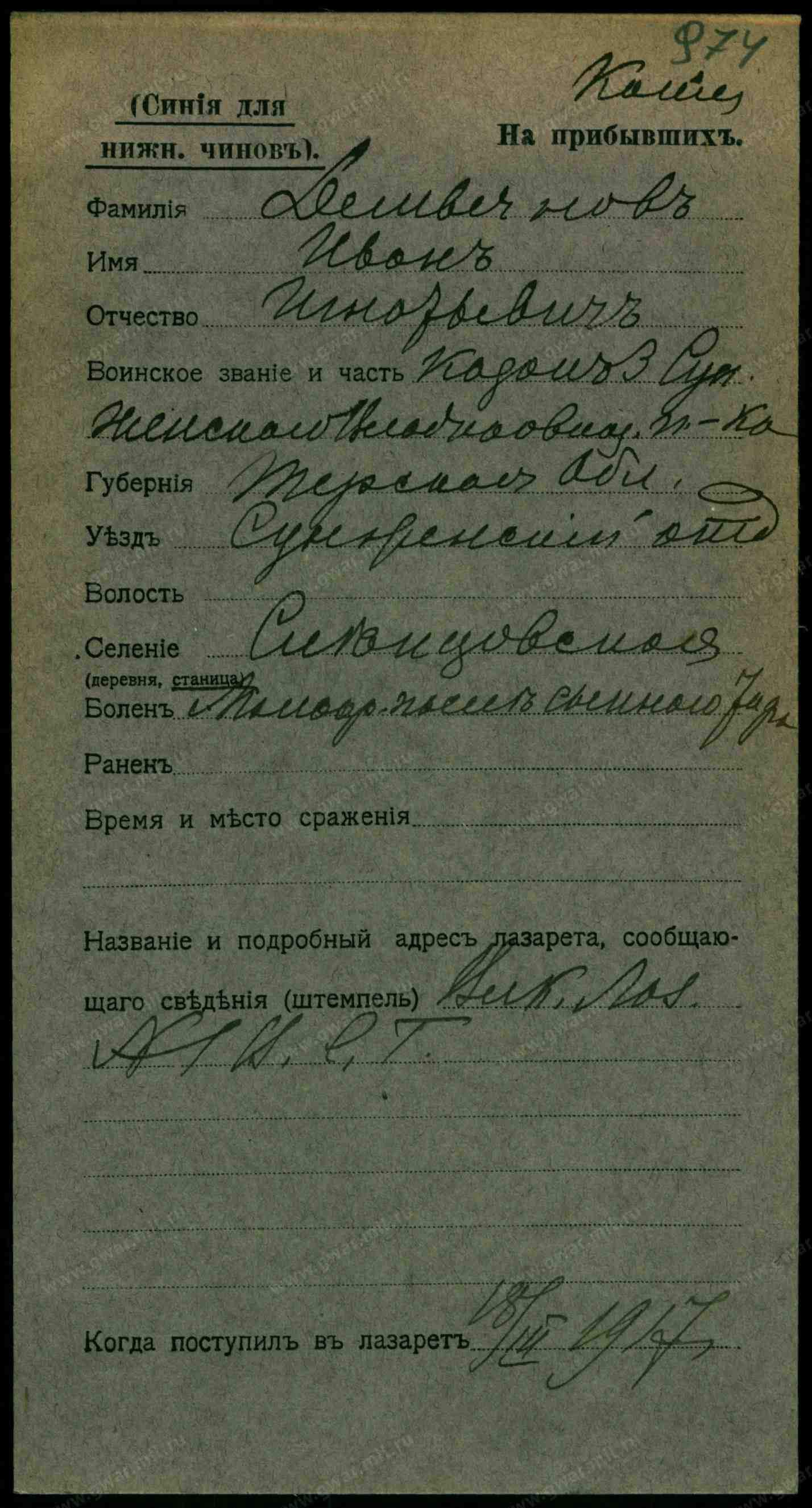 __.__.1908 Чечено-Ингушская АССР, ст. Свищенск, ст. Свищовка, Место службы: 188 сд