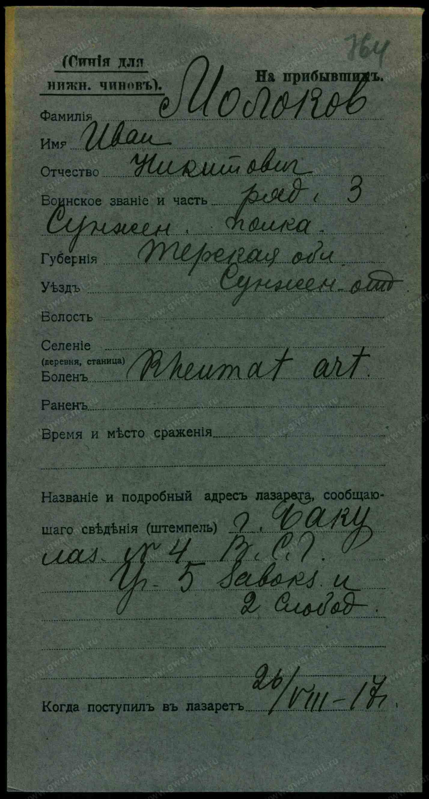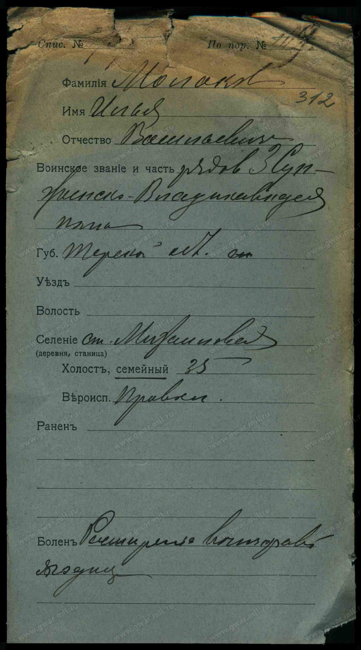 Фонд Картотека бюро учета потерь в Первой мировой войне (офицеров и солдат)