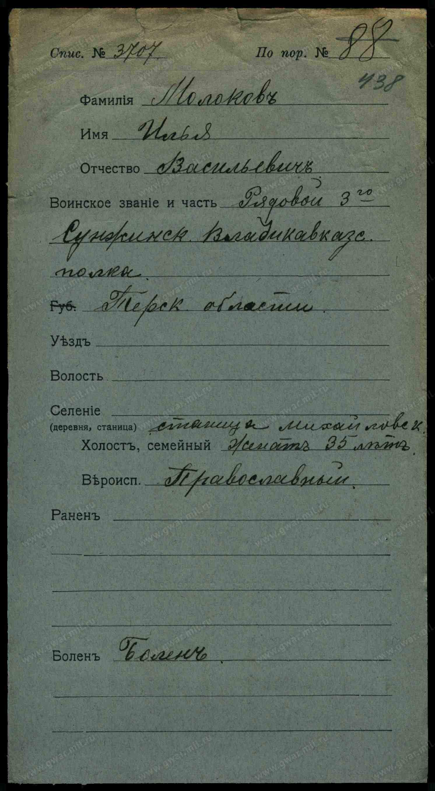 Воинская часть 3-й Сунженско-Владикавказский полк Терского казачьего войска