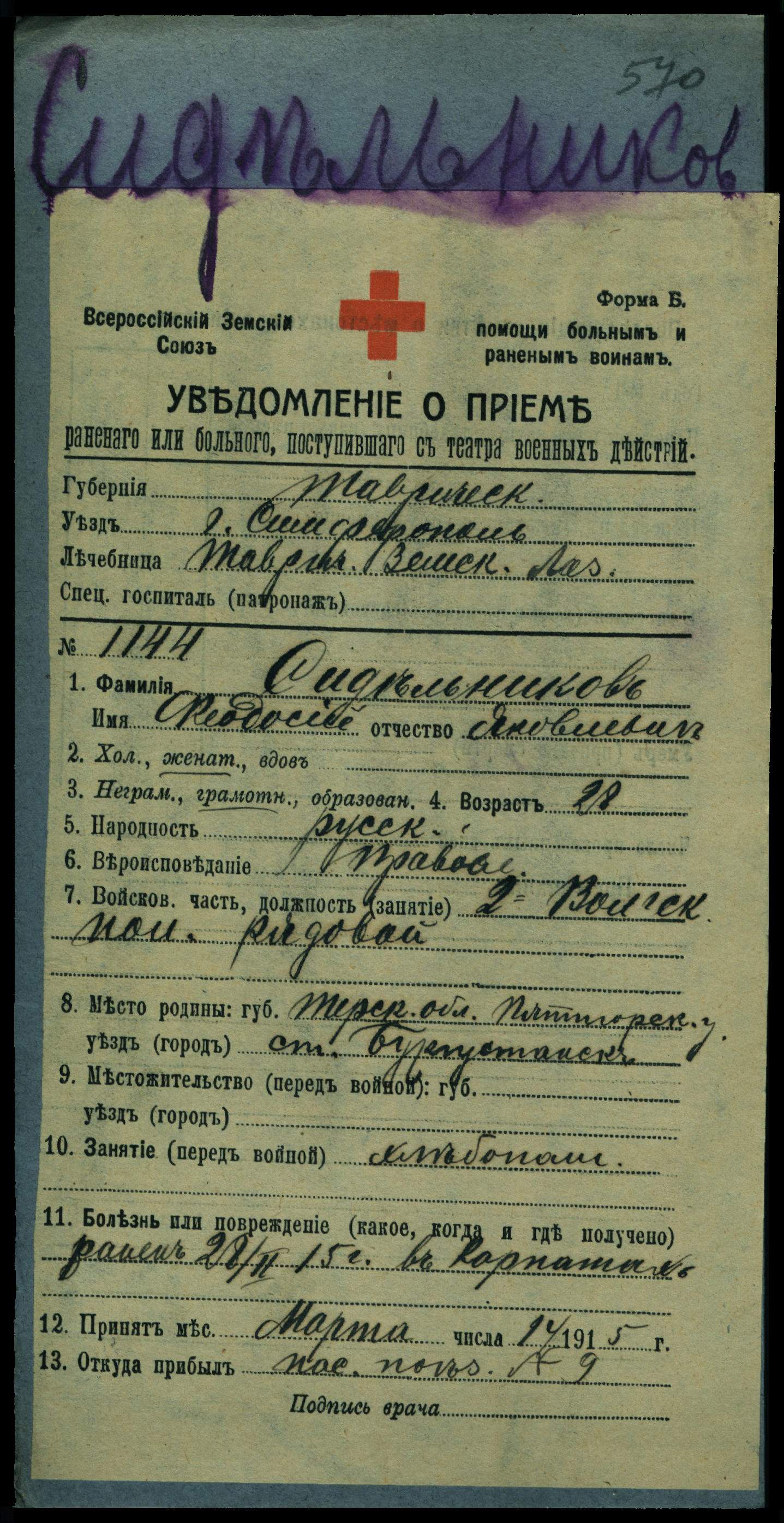 Сидельников Емельян Дмитриев Терская обл. Боргустанская ст. ПС казаков 1875