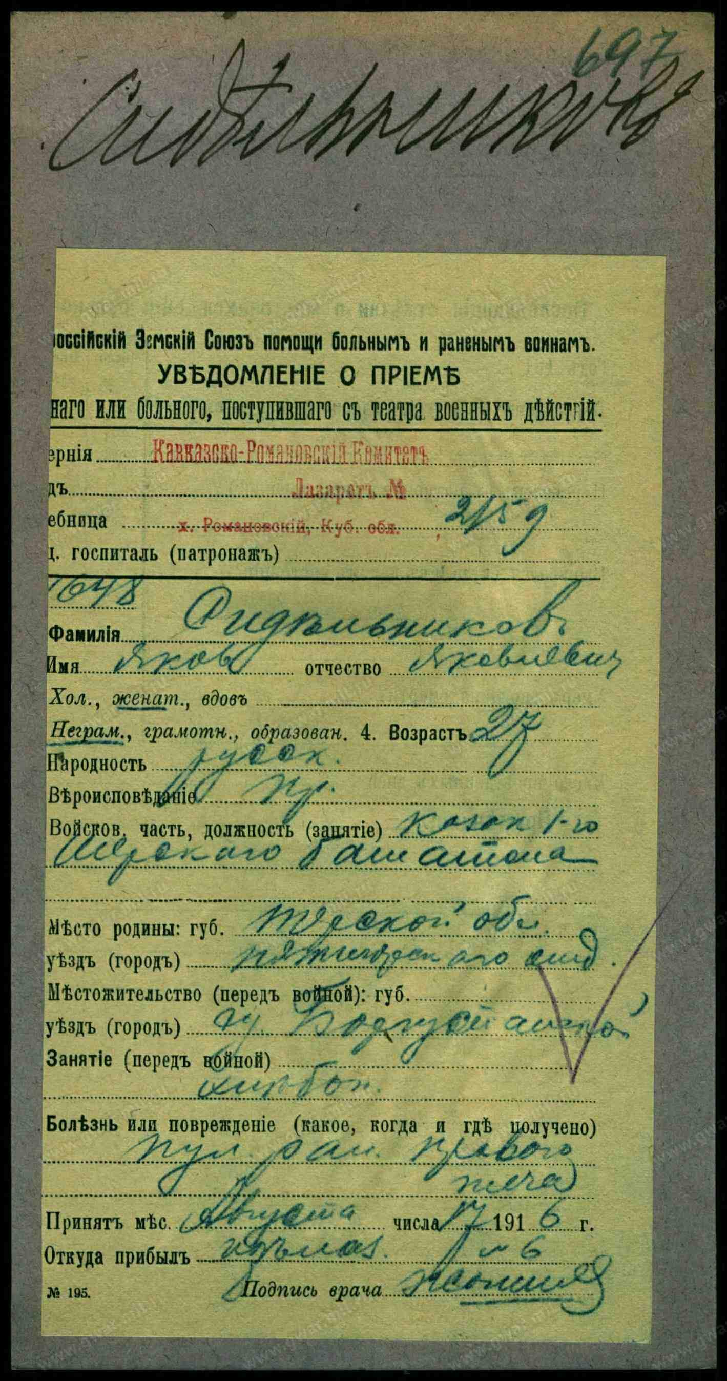 Место рождения Терская обл., Пятигорский отдел, стнц. Боргустанская