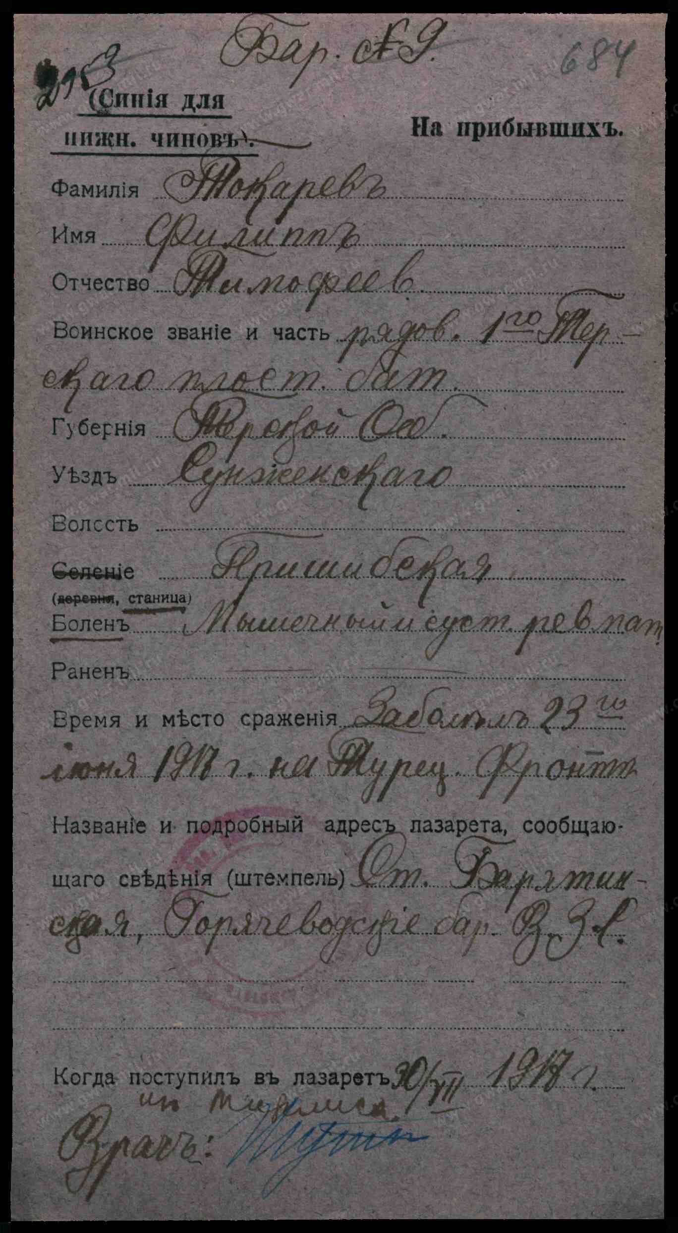 Евдокія Тимоѳеева Токарева, православнаго вѣроисповѣданія, первымъ бракомъ. Лѣта невѣсты 19.