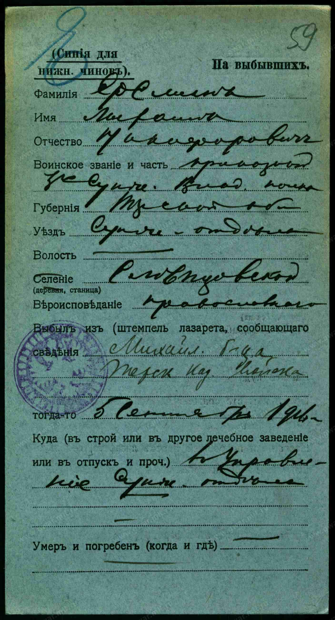 Тип документа Карточка на выбывших (нижние чины)