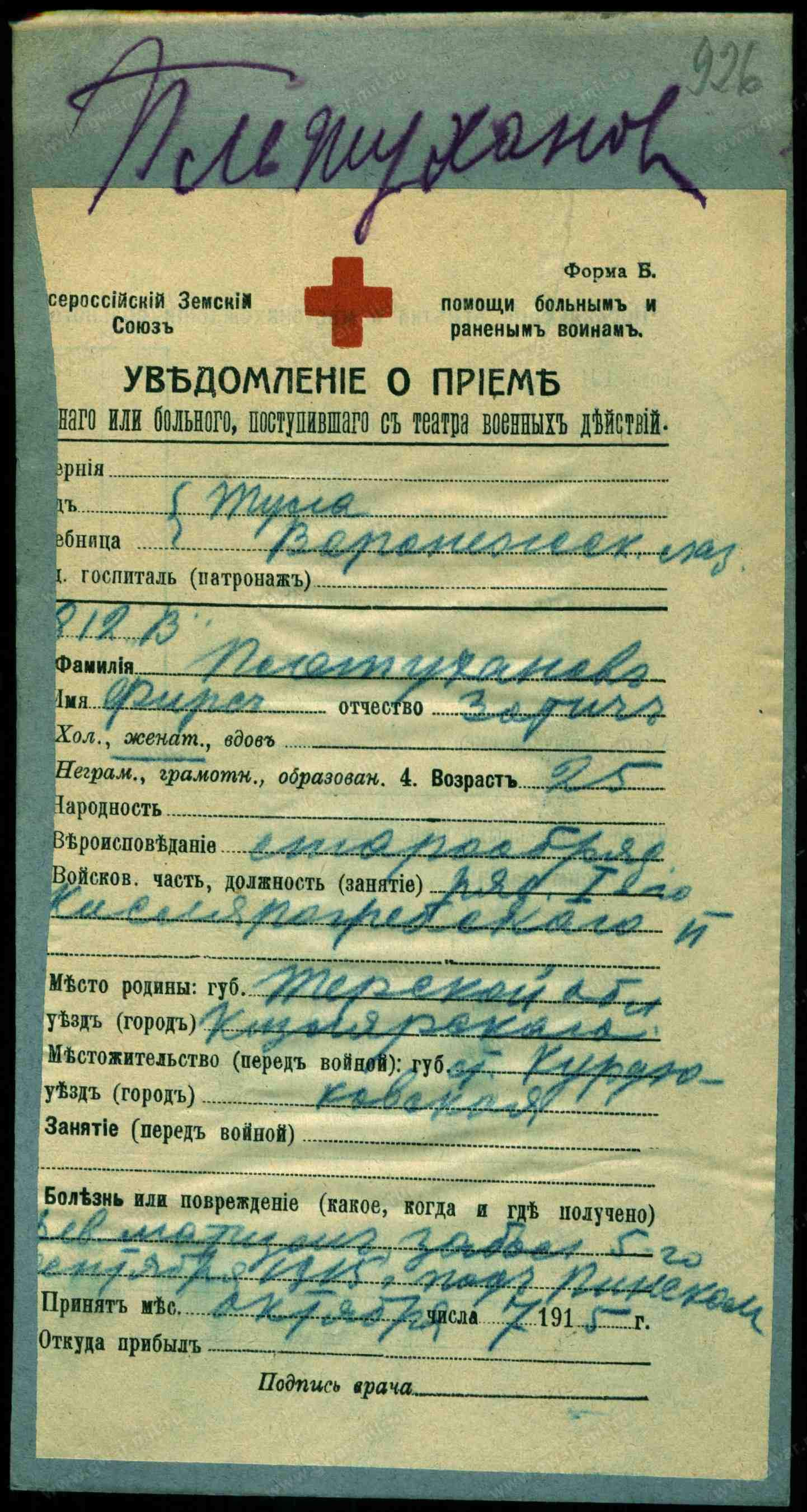 Место рождения Терская обл., Кизлярский отдел, Курдюковская станица