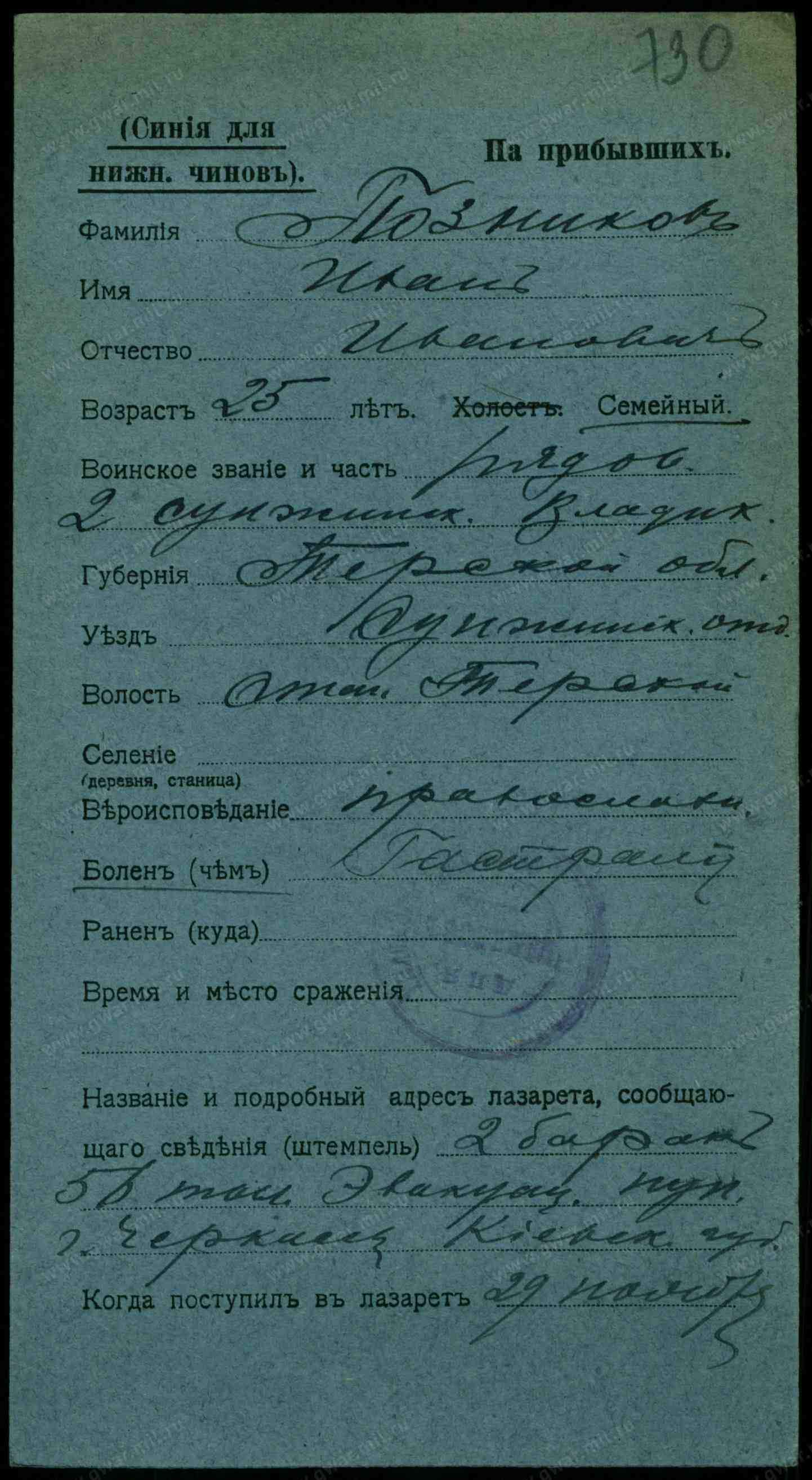 Ефрейтор, __.__.1915 Грозненская обл., Сунженский р-н, ст. Троицкая