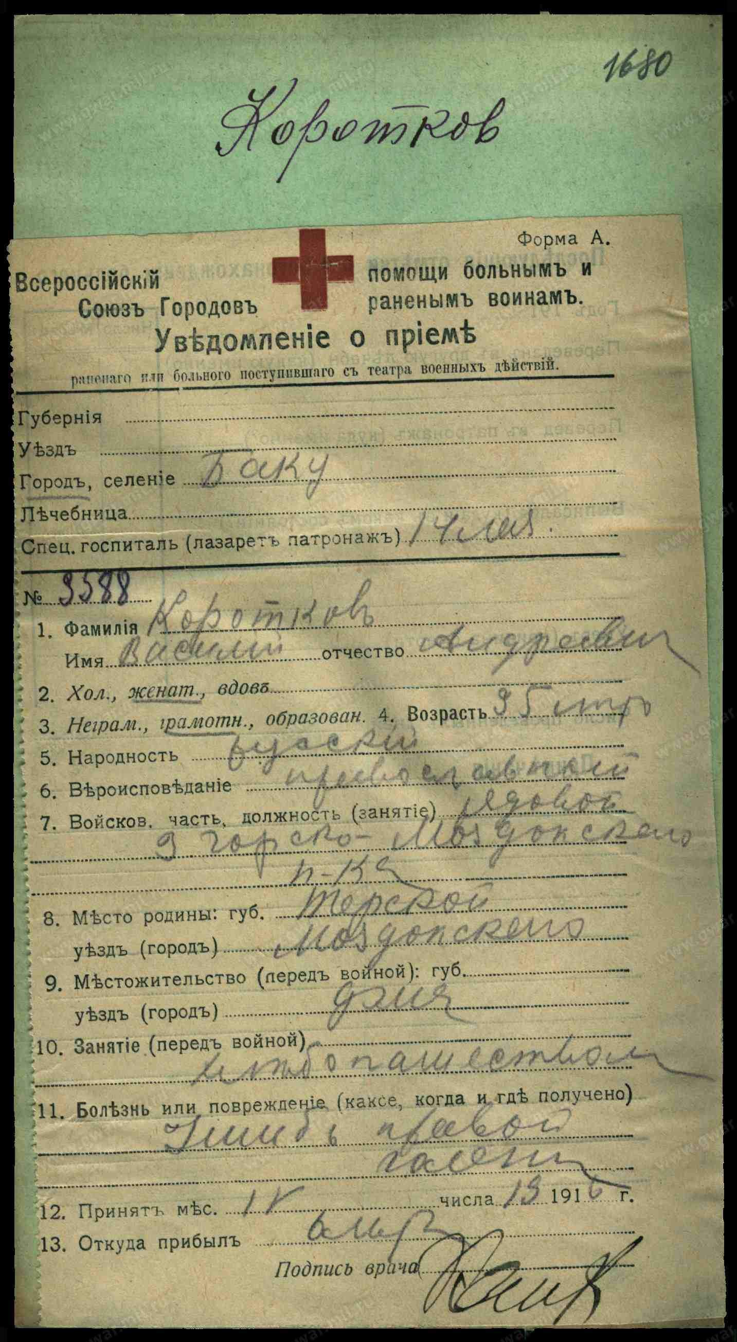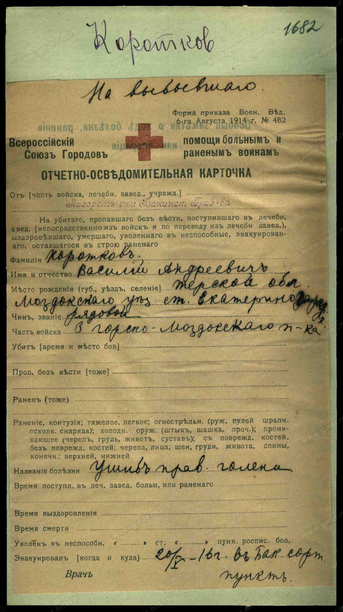 Фонд Картотека бюро учета потерь в Первой мировой войне (офицеров и солдат)