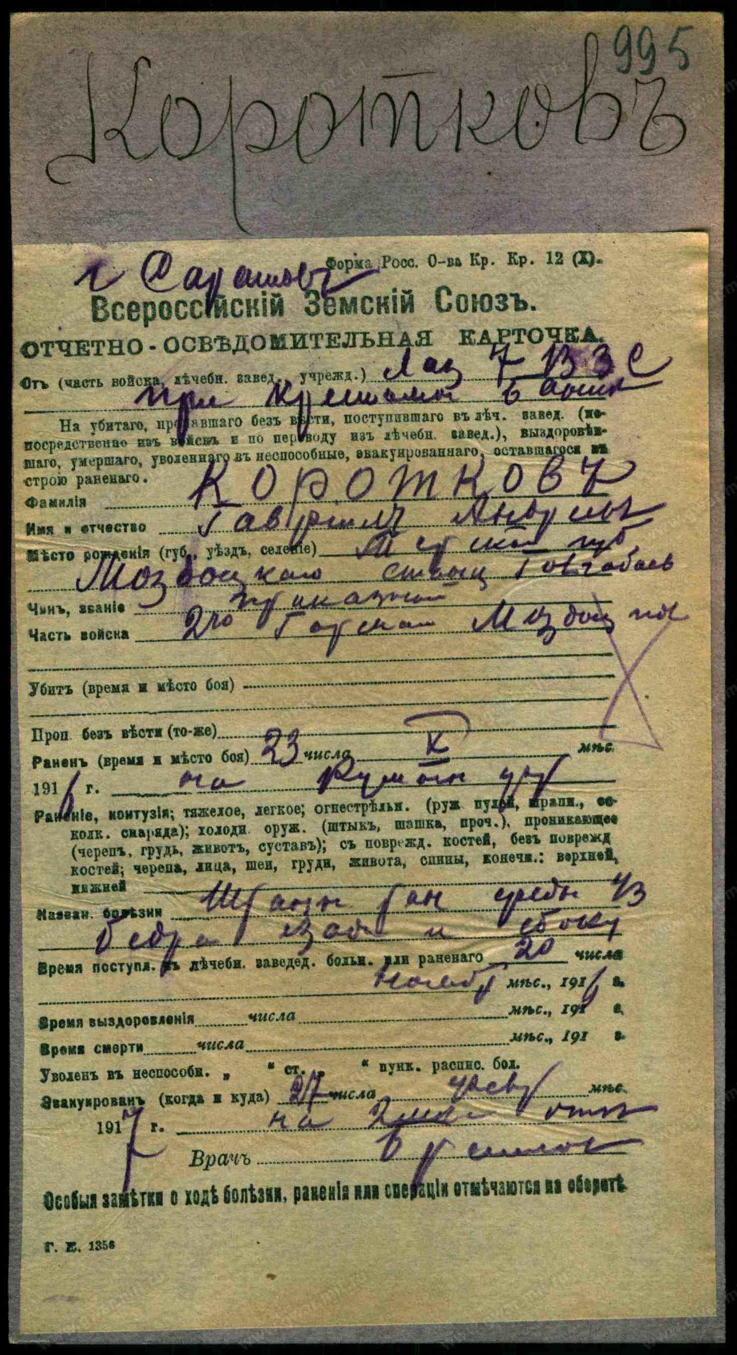 Фонд Картотека бюро учета потерь в Первой мировой войне (офицеров и солдат)