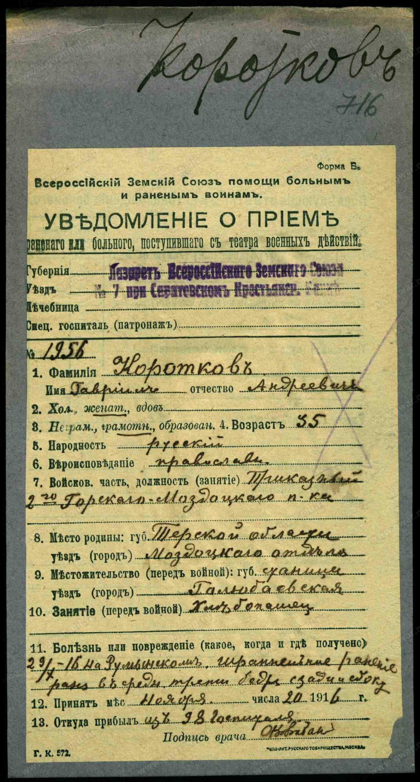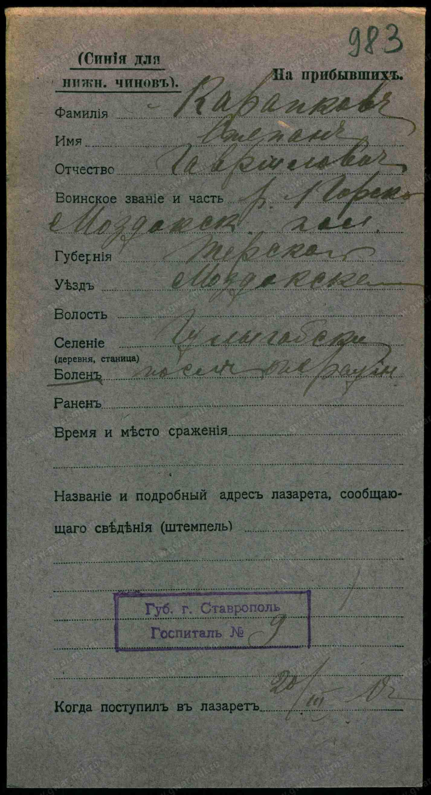 Место рождения Терская обл., Моздокский отдел, стнц. Галюгаевская