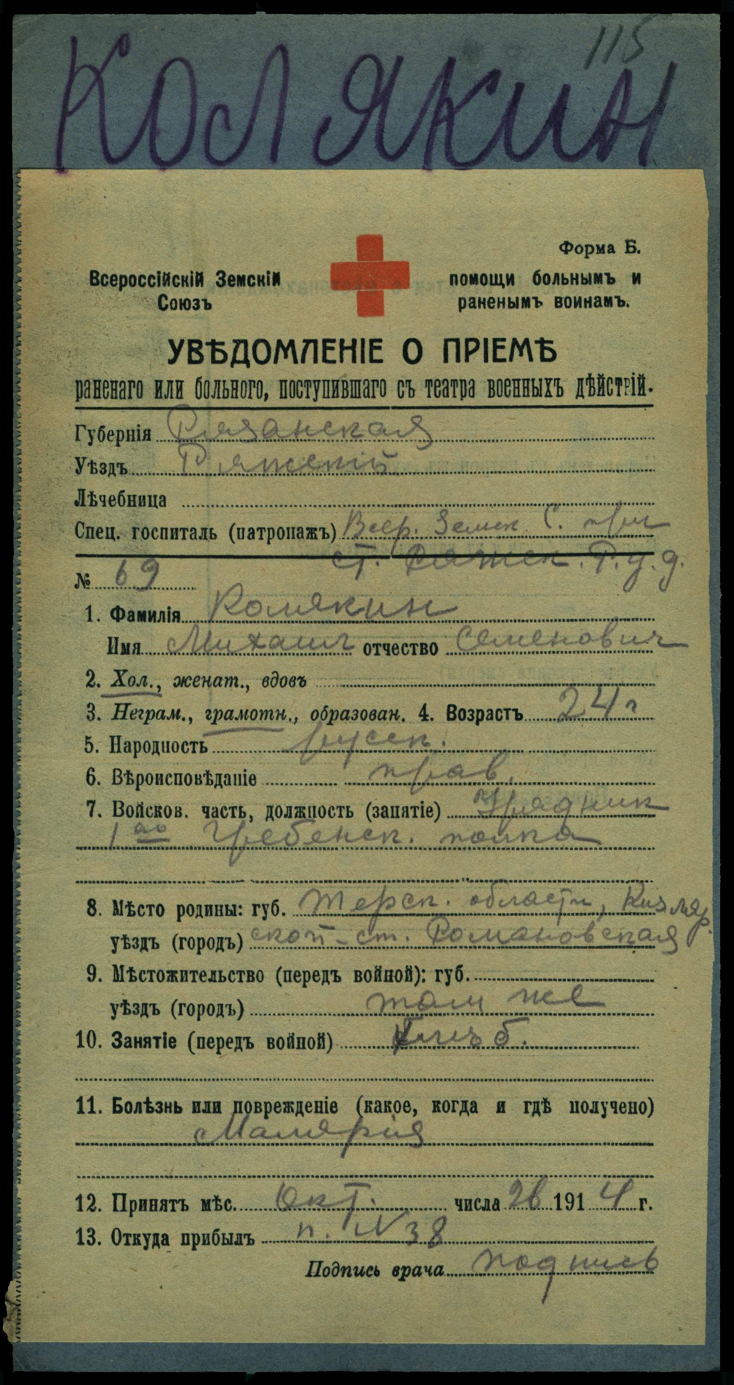 Фонд Картотека бюро учета потерь в Первой мировой войне (офицеров и солдат)