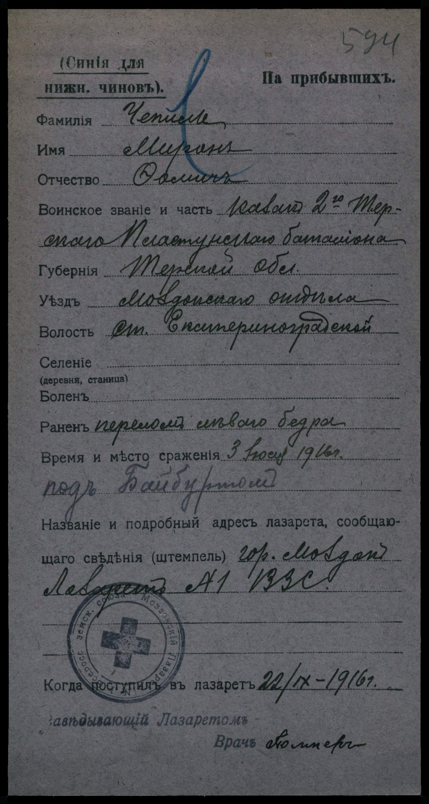 Дата выбытия 03.07.1916