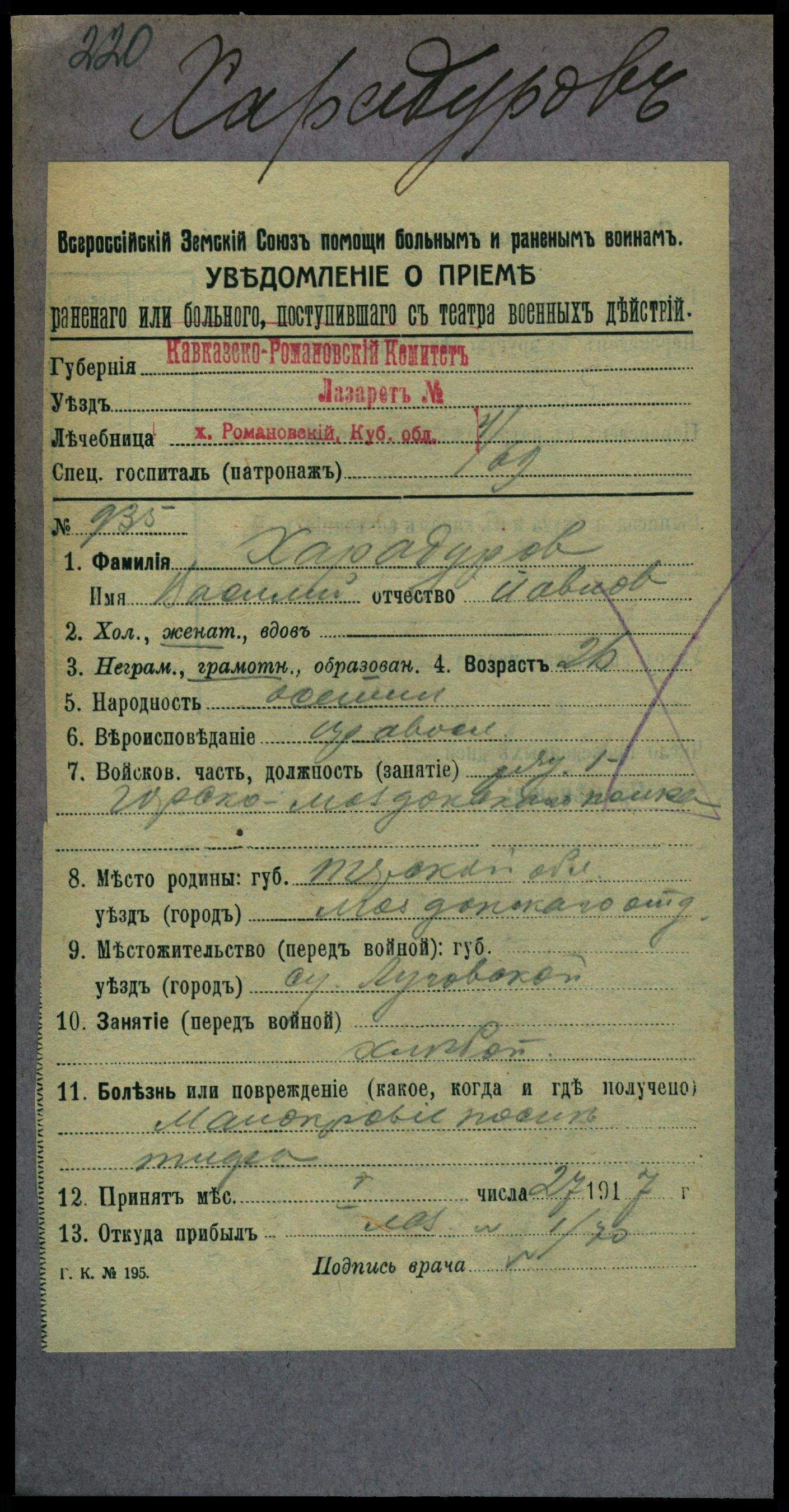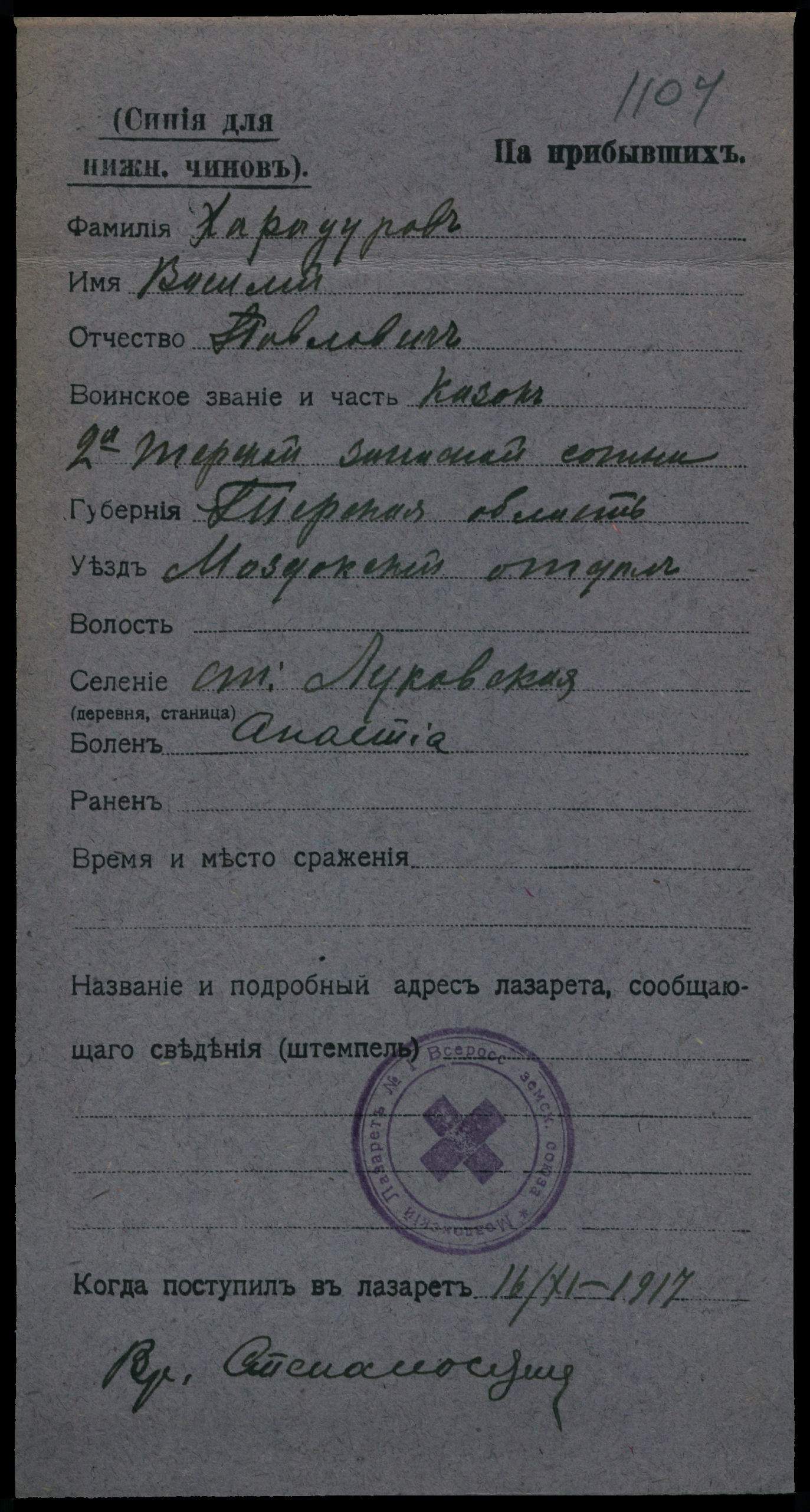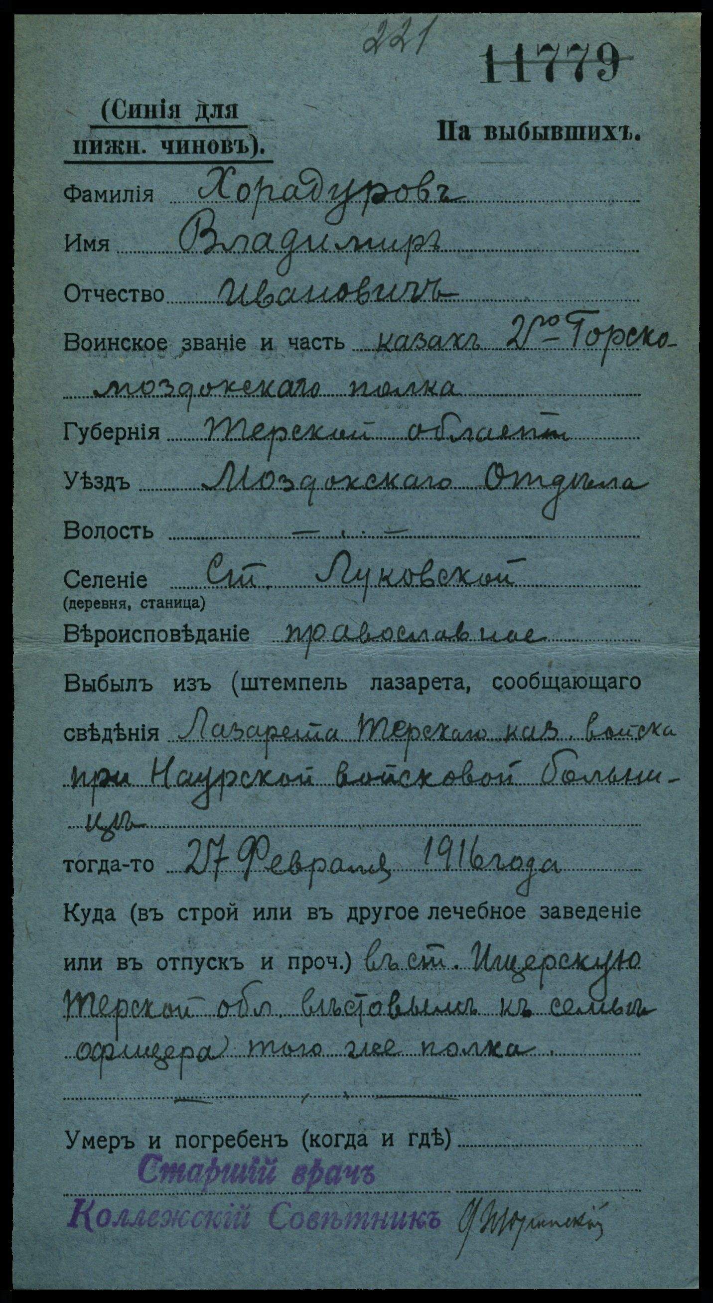 16795 Харадуров, Иван Антонов. Казак стан. Луковской, Терской обл. (хлебопашец), 44 л.; приговорен Мир. С. 4 уч. Кизлярского окр., по ст. 172 Уст. о нак., в тюрьму на 3 мес. Исп. 31 Окт. 1878 г.