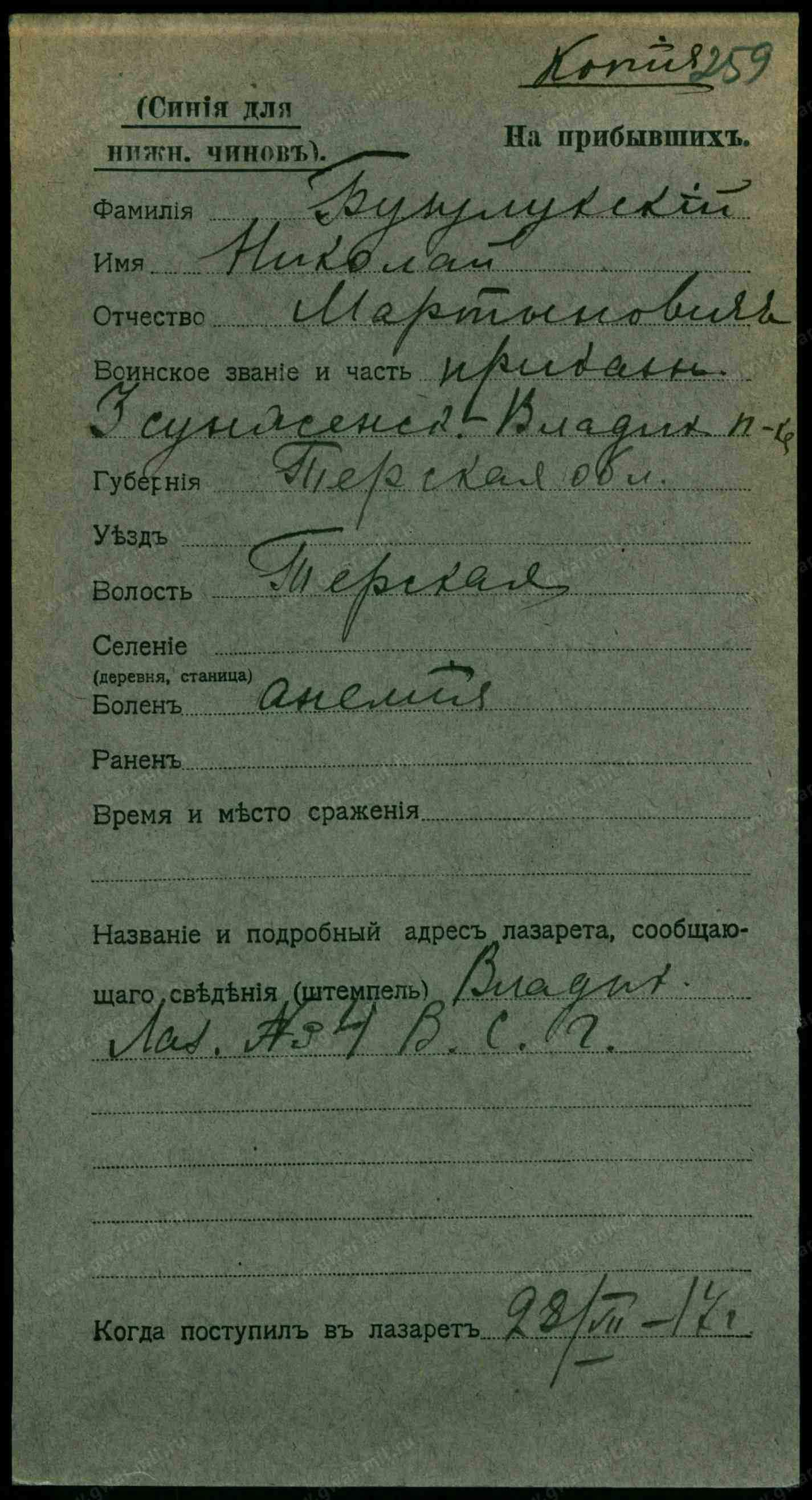 Тип документа Карточка на выбывших (нижние чины)