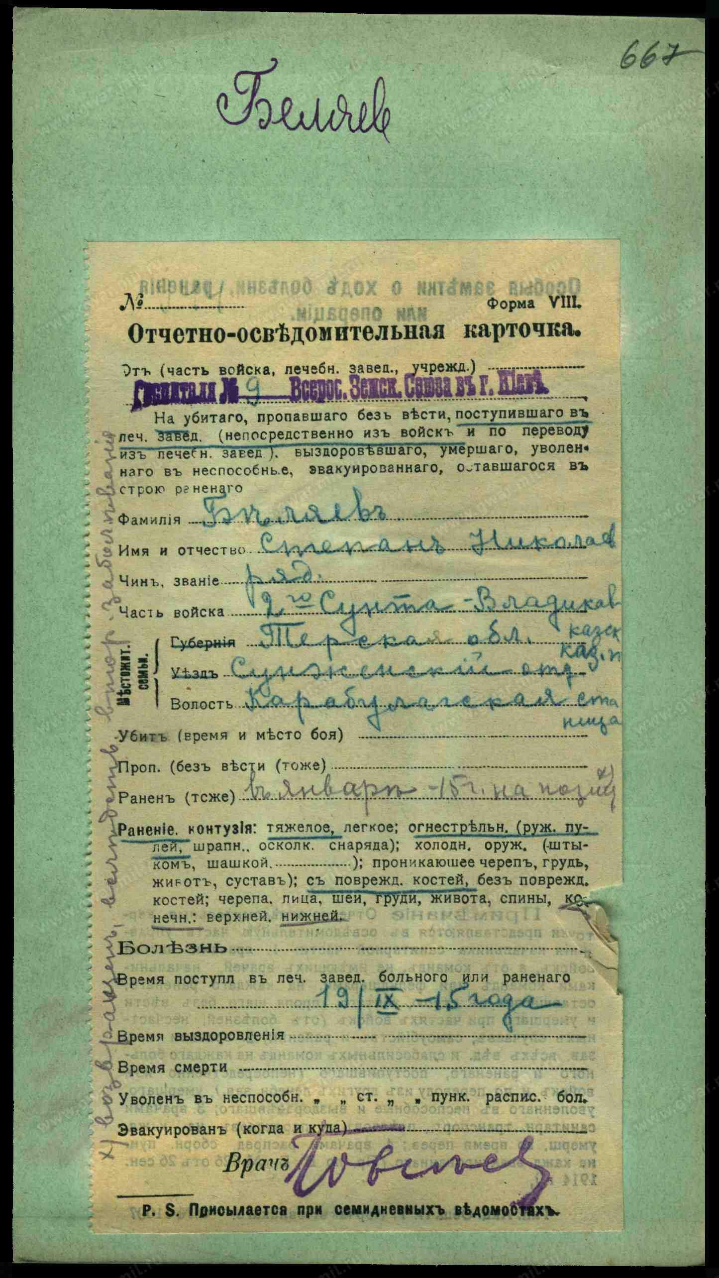 Фонд Картотека бюро учета потерь в Первой мировой войне (офицеров и солдат)