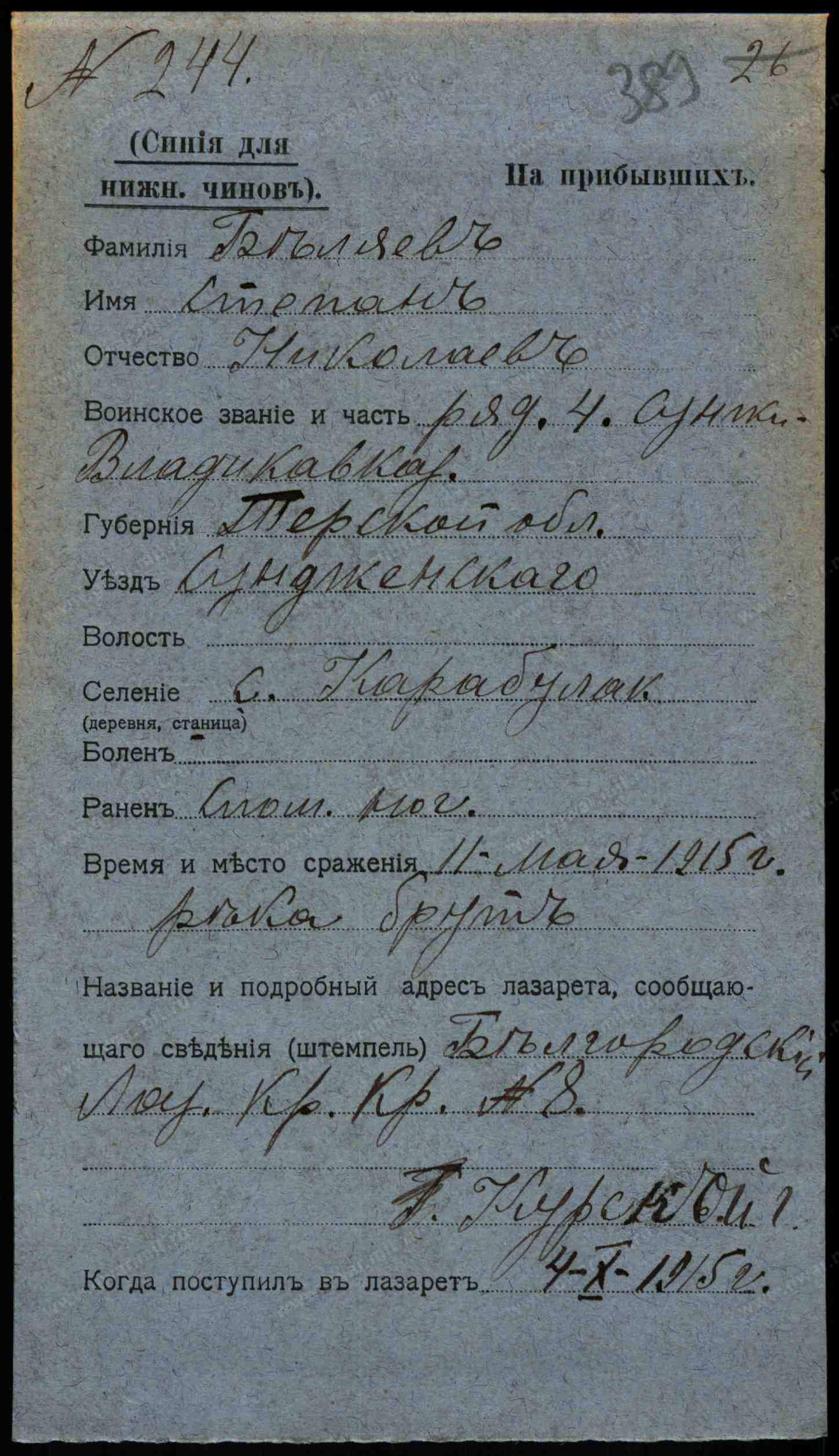 Место рождения Терская обл., Сунженский отдел, Карабулакская станица