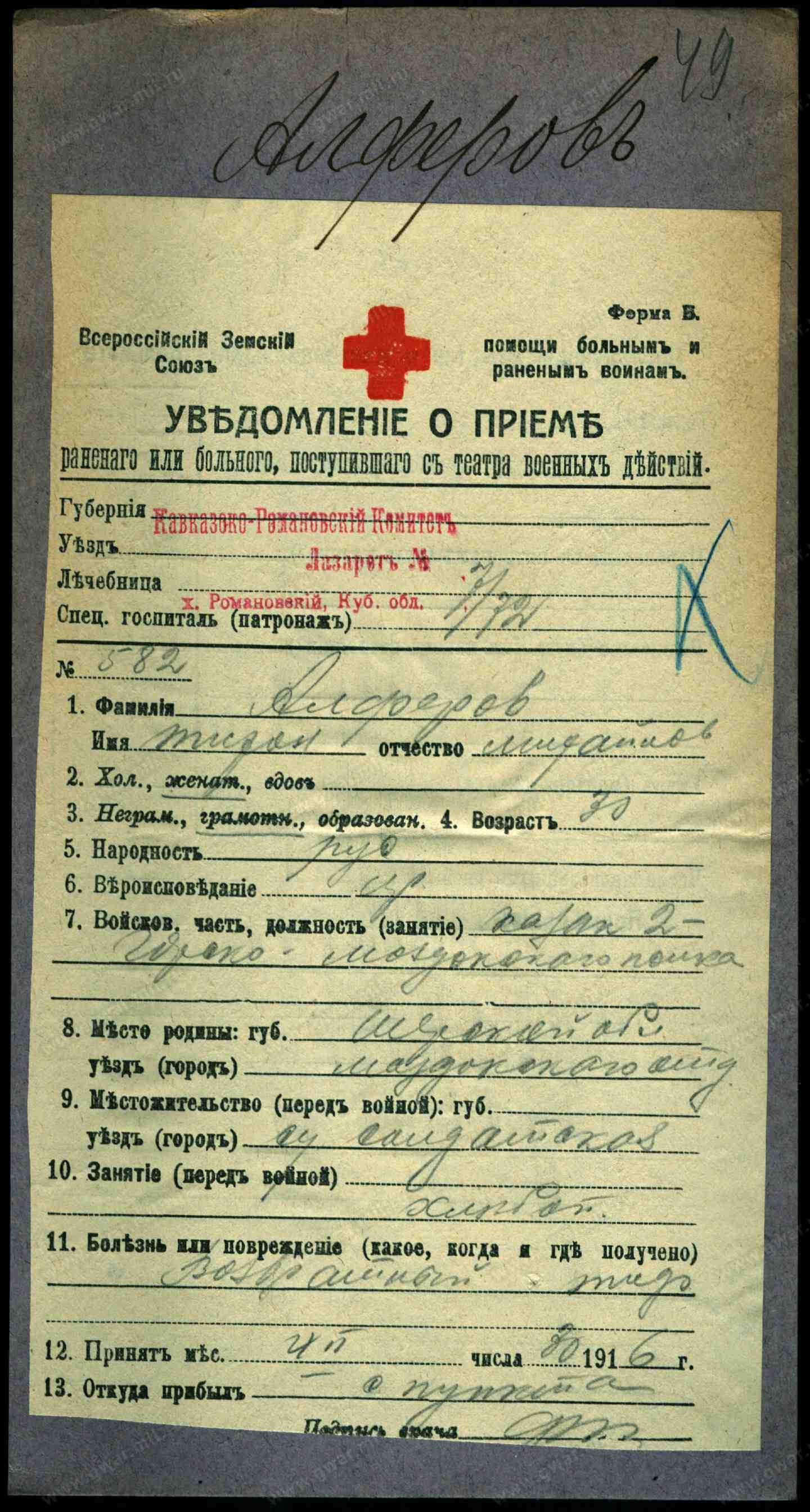 Место рождения Терская обл., Моздокский отдел, стнц. Солдатская