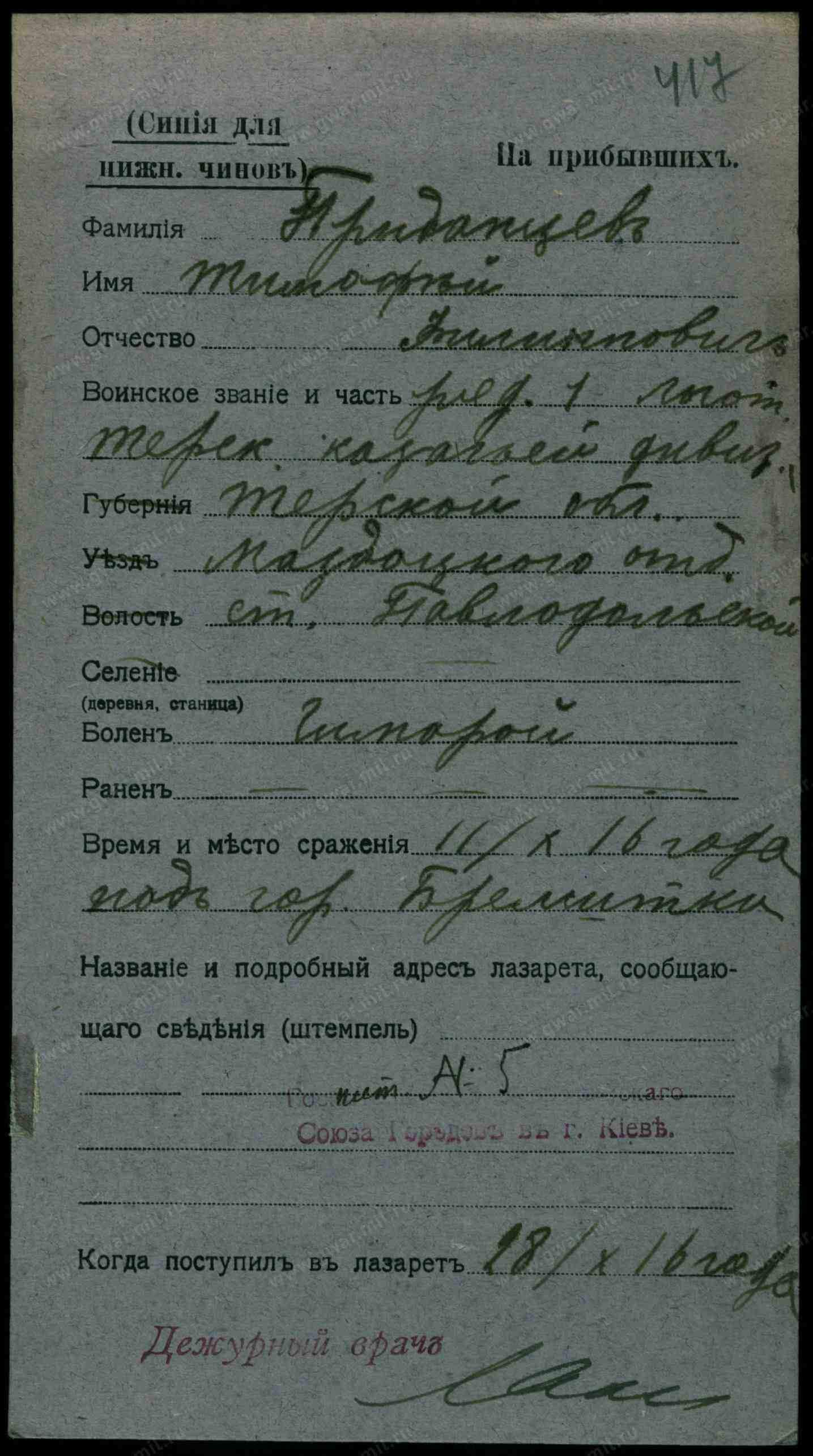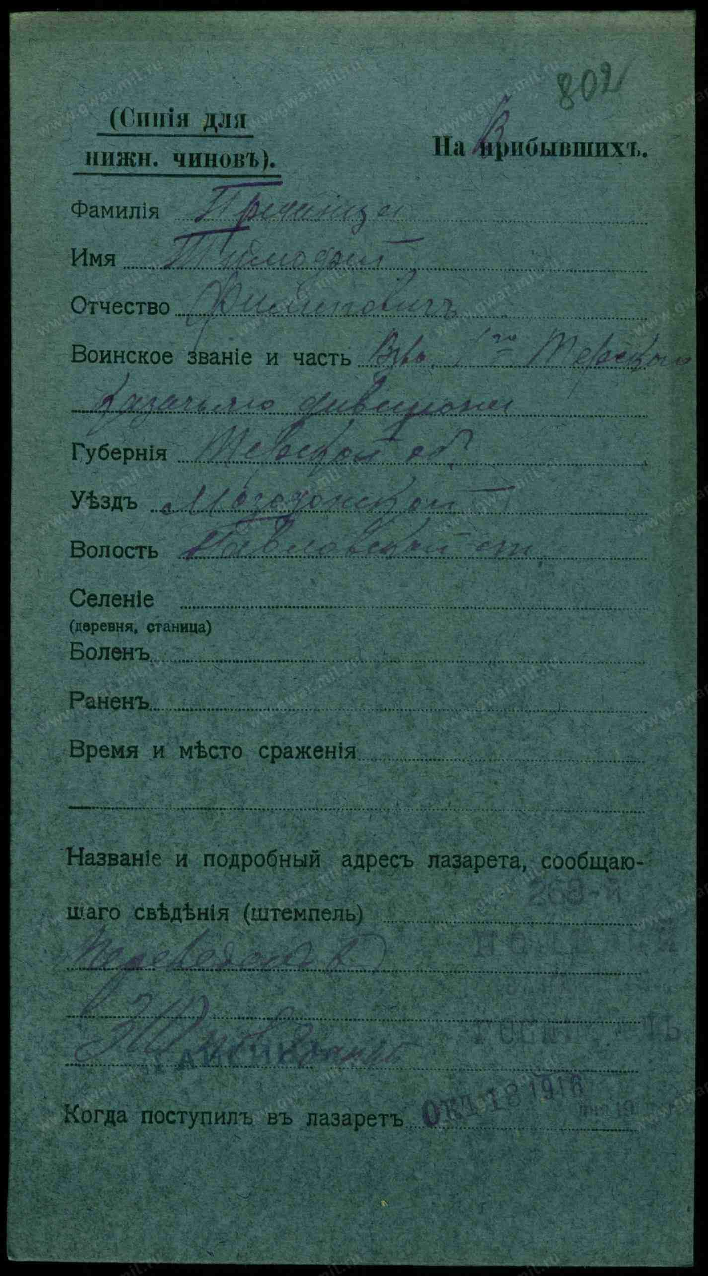 Фонд Картотека бюро учета потерь в Первой мировой войне (офицеров и солдат)