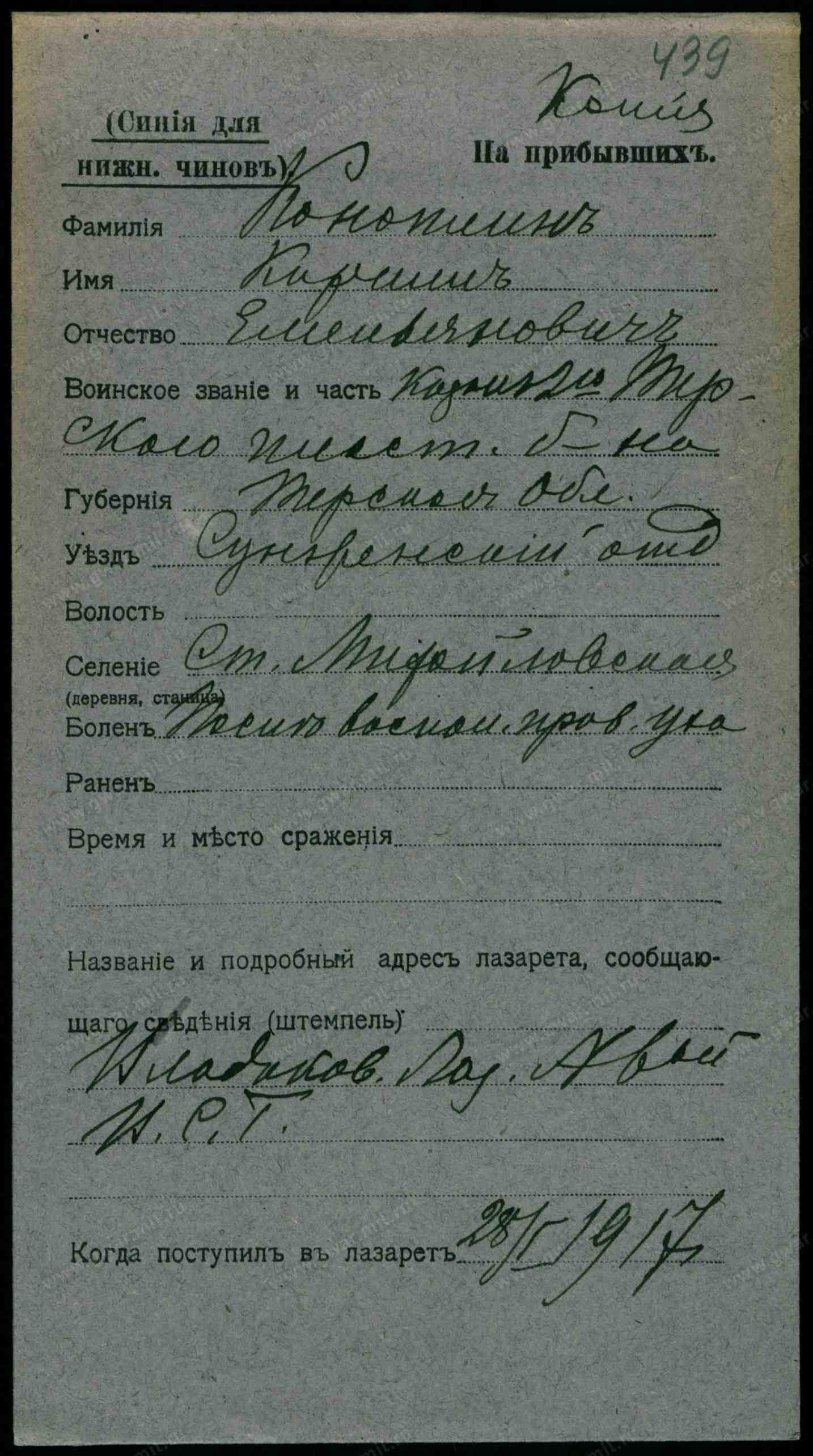35 Сергей Коноплинъ ............................. Михайловской .......................... Съ сохраненіемъ гвардейскаго мундира и награжденіемъ знакомъ за службу въ конвоѣ и производствомъ в урядники.