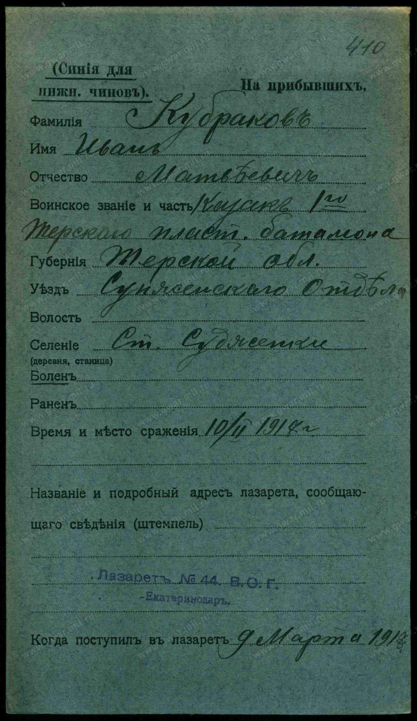 20511 Кубраков 2, Константин Матвеев, 19 л. Каз. Сунженск. отд. и ст.; — М. С. 3 уч. Владикавказск. окр., 31 Авг. 912 (д. №1196/912), 169 М., тюр. 3 м. Исп. 9 Нояб. 912.