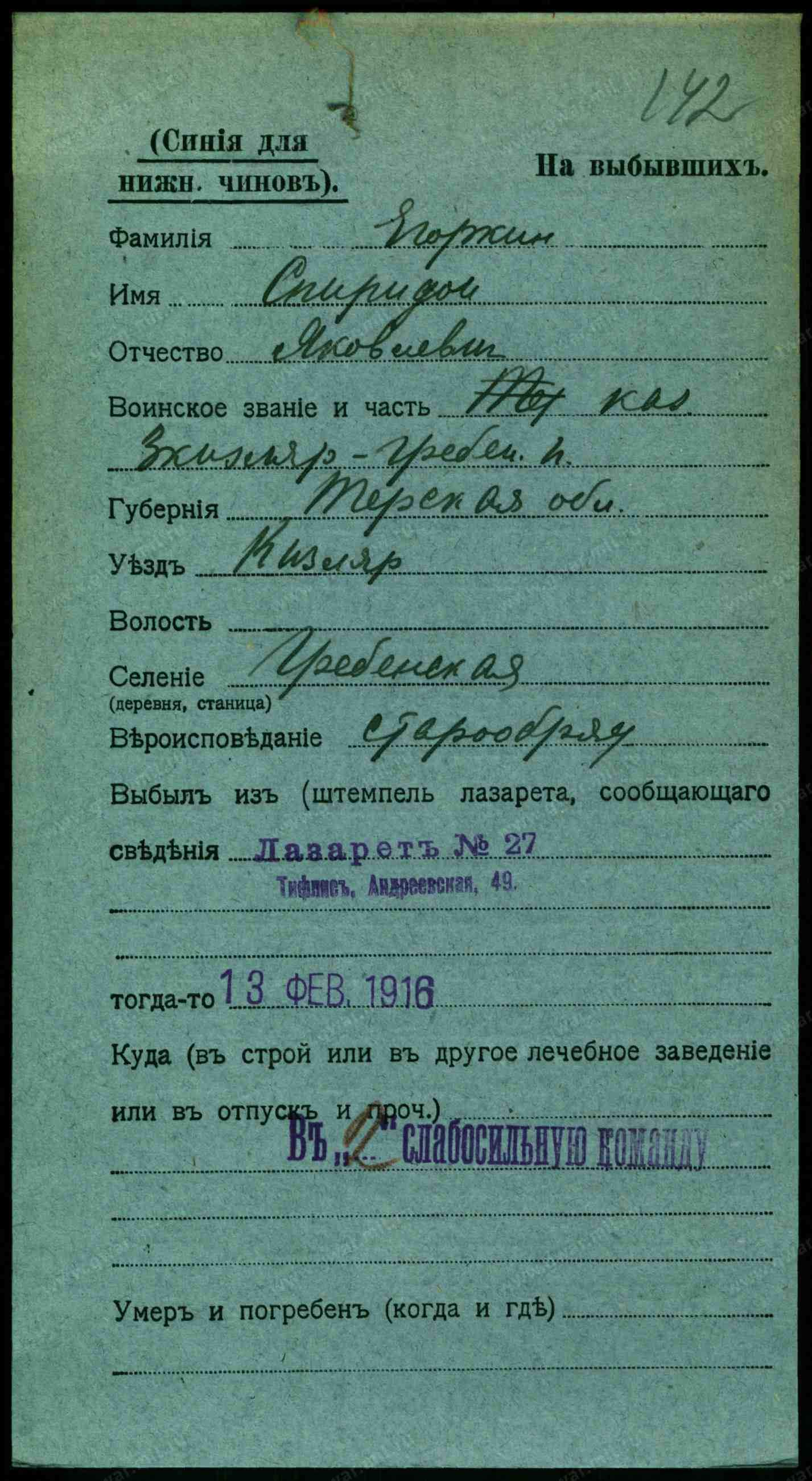 Тип документа Карточка на выбывших (нижние чины)
