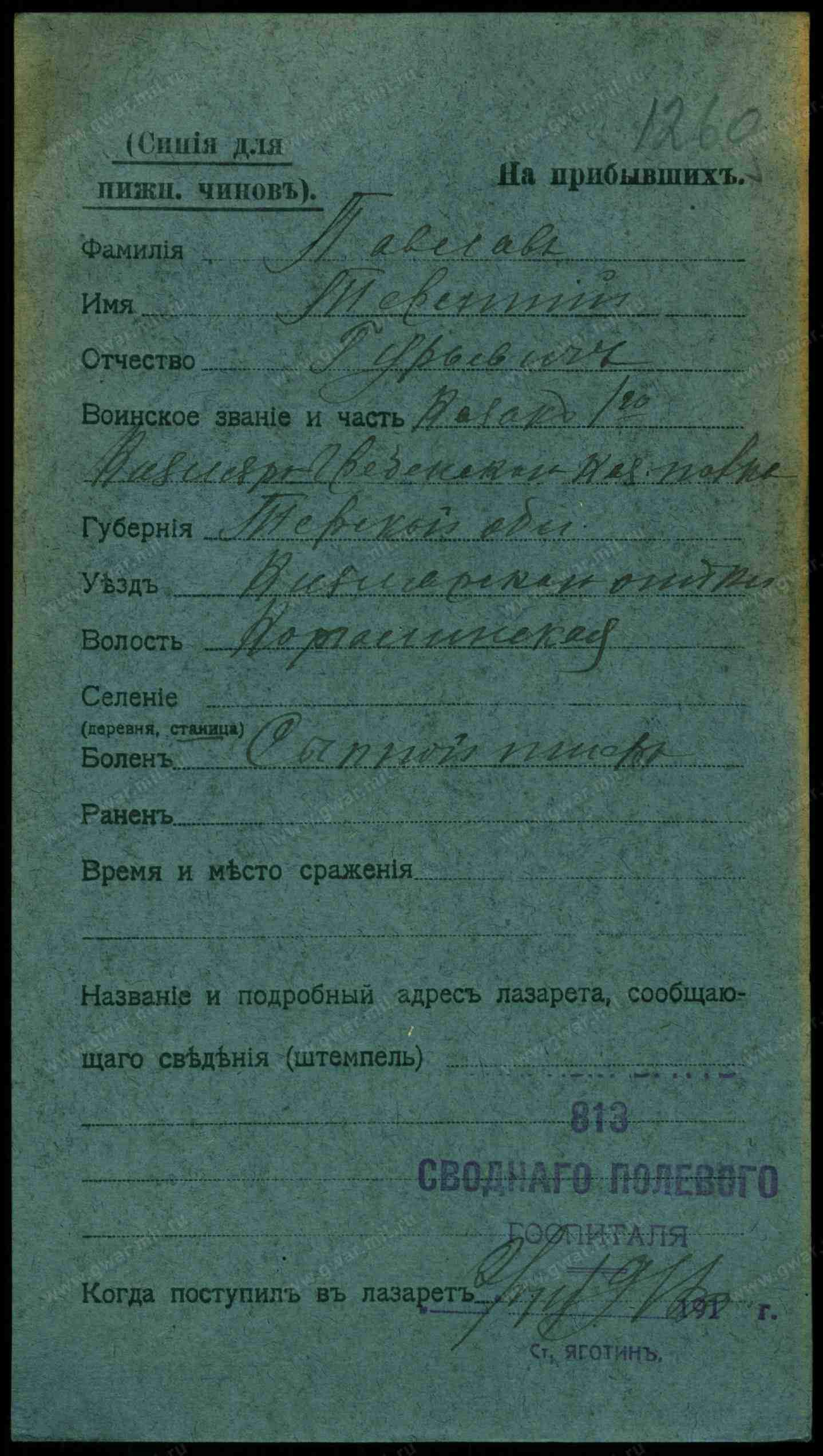 Фонд Картотека бюро учета потерь в Первой мировой войне (офицеров и солдат)