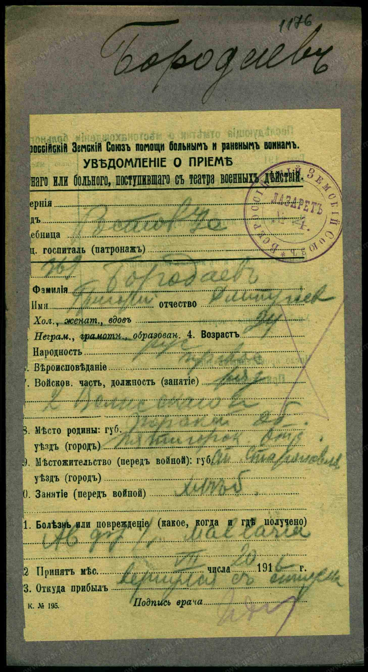 Место рождения Терская обл., Пятигорский отдел, стнц. Старопавловская